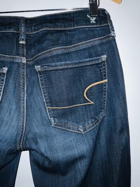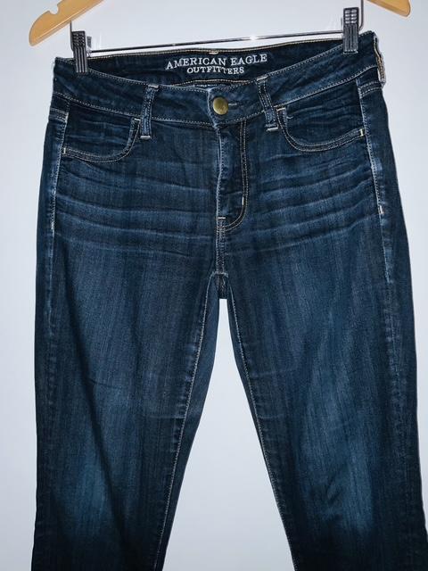 AMERICAN EAGLE Jean cinco bolsillos Skinny lavado oscuro. Talla 4 americana