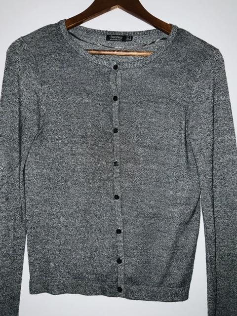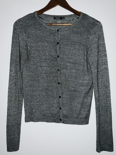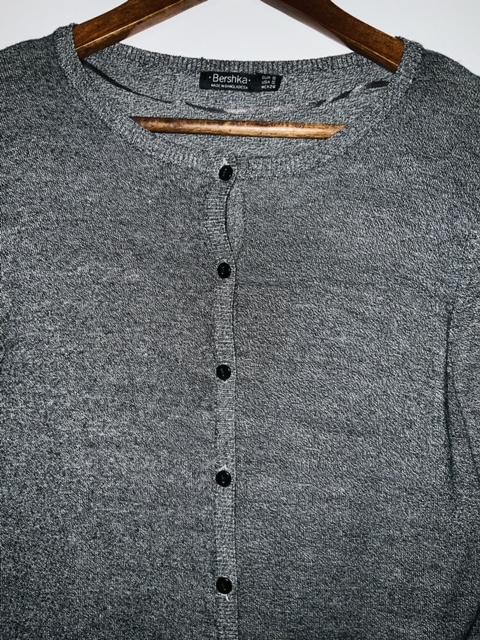 BERSHKA Cardigan tejido abierto efecto jaspe. Talla S