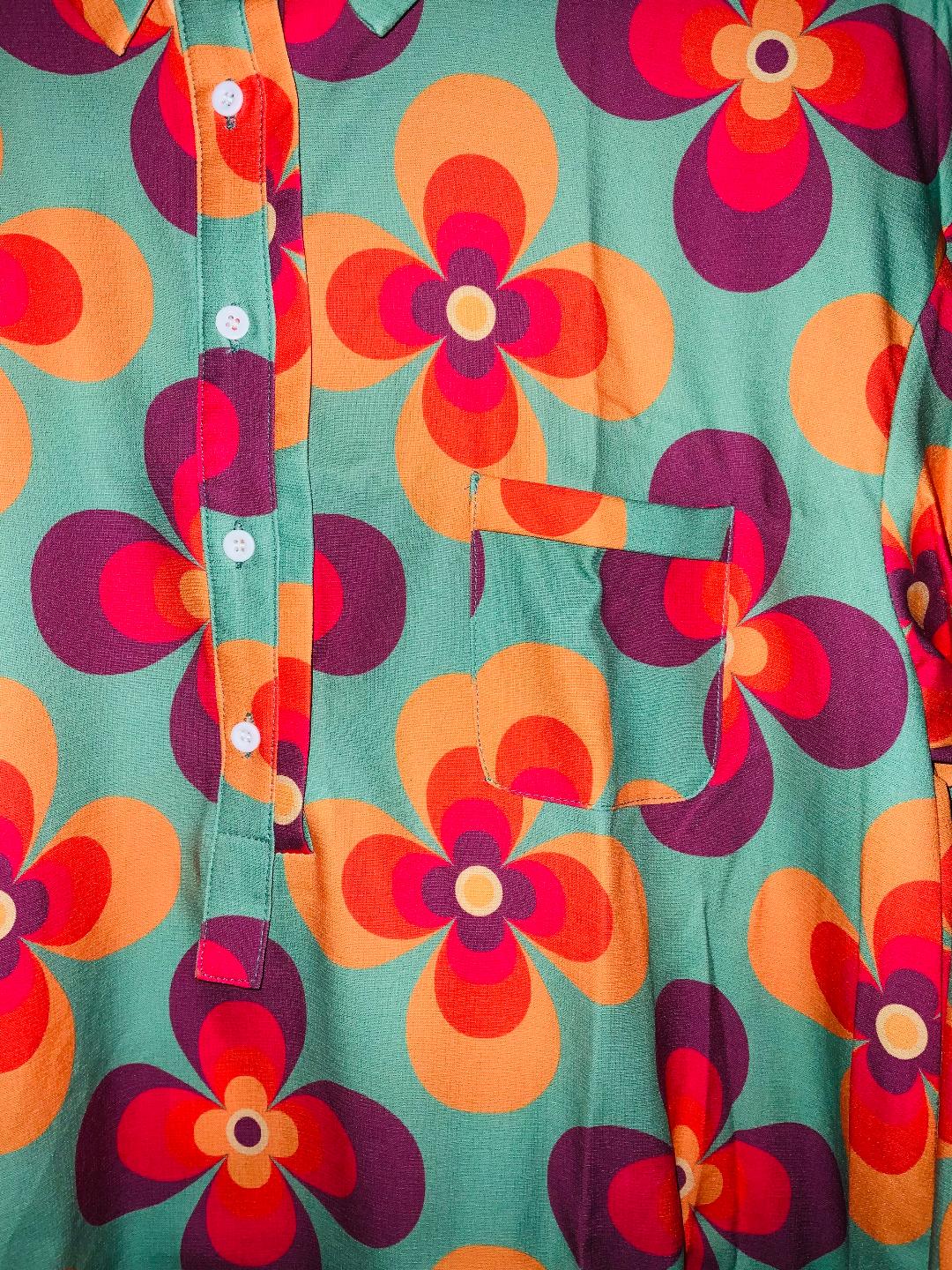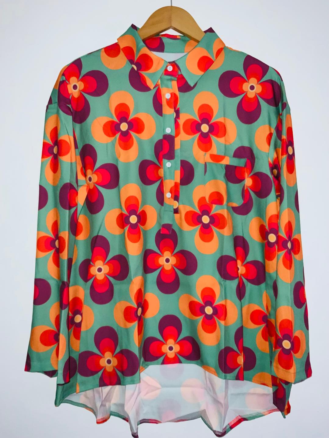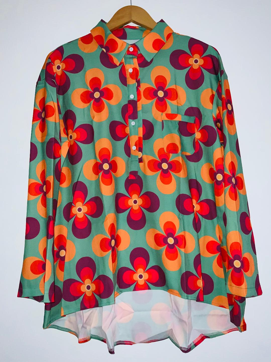 - Blusa en tela plana estampada flores hippie