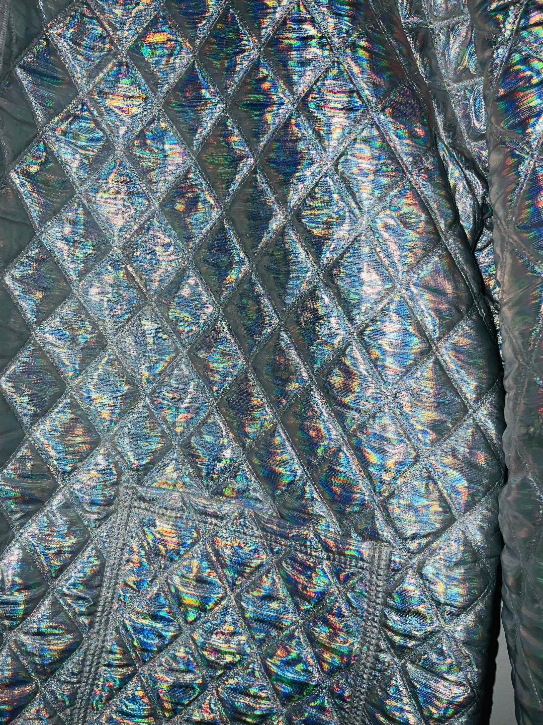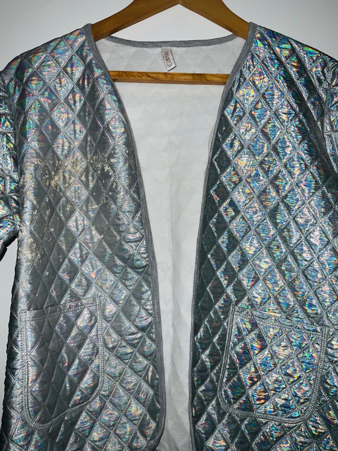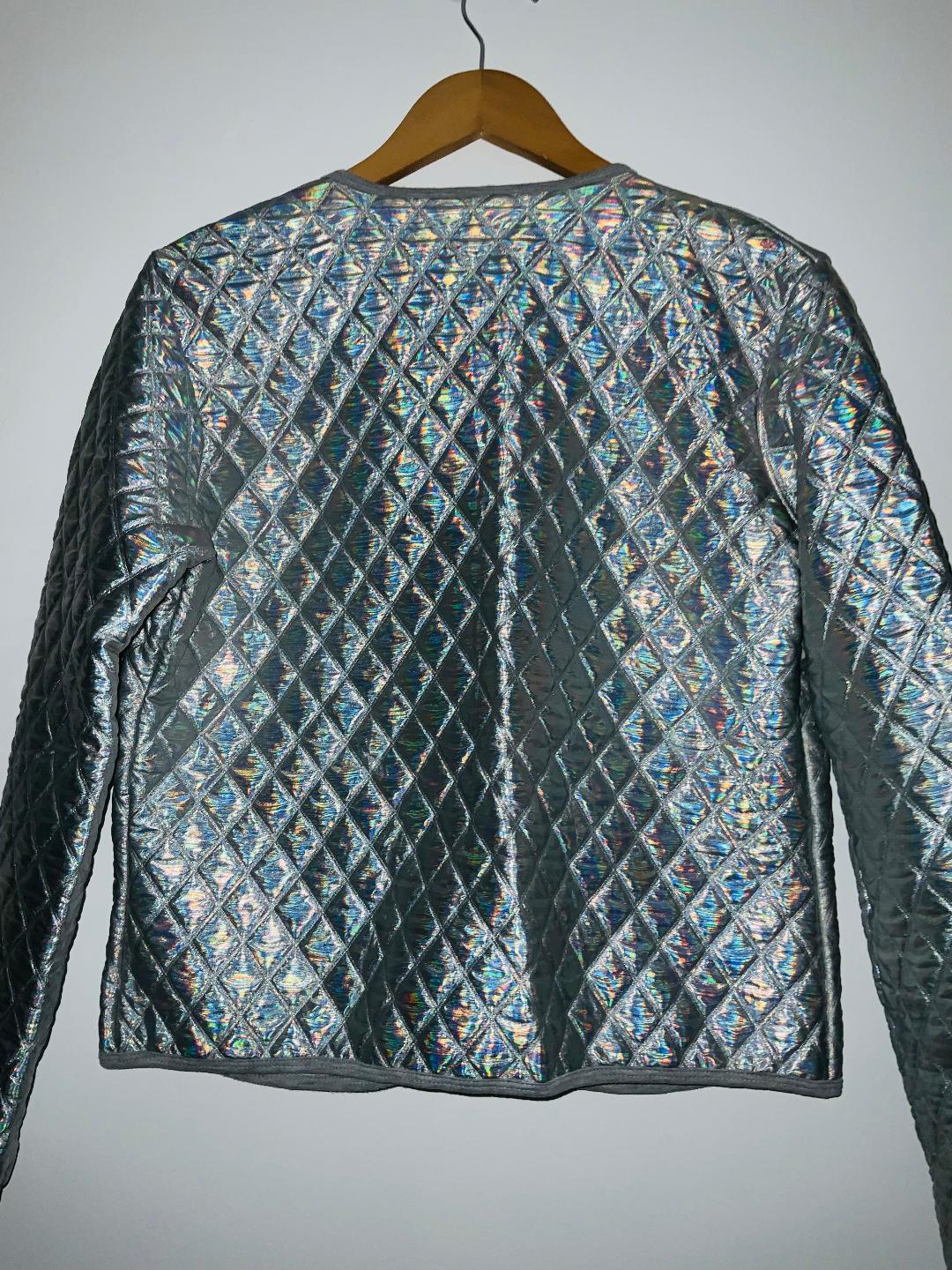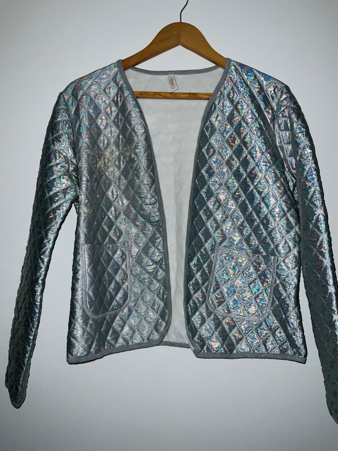 - Chaqueta abullonada manga larga sin botones en tela plateada