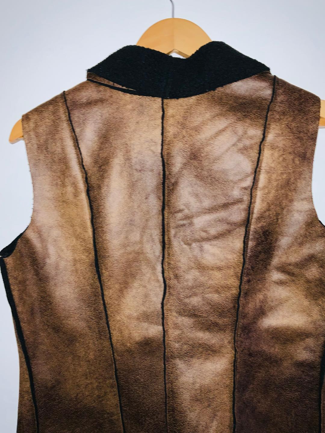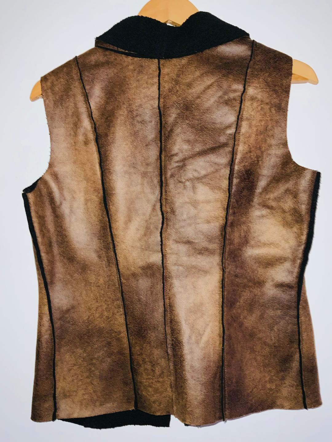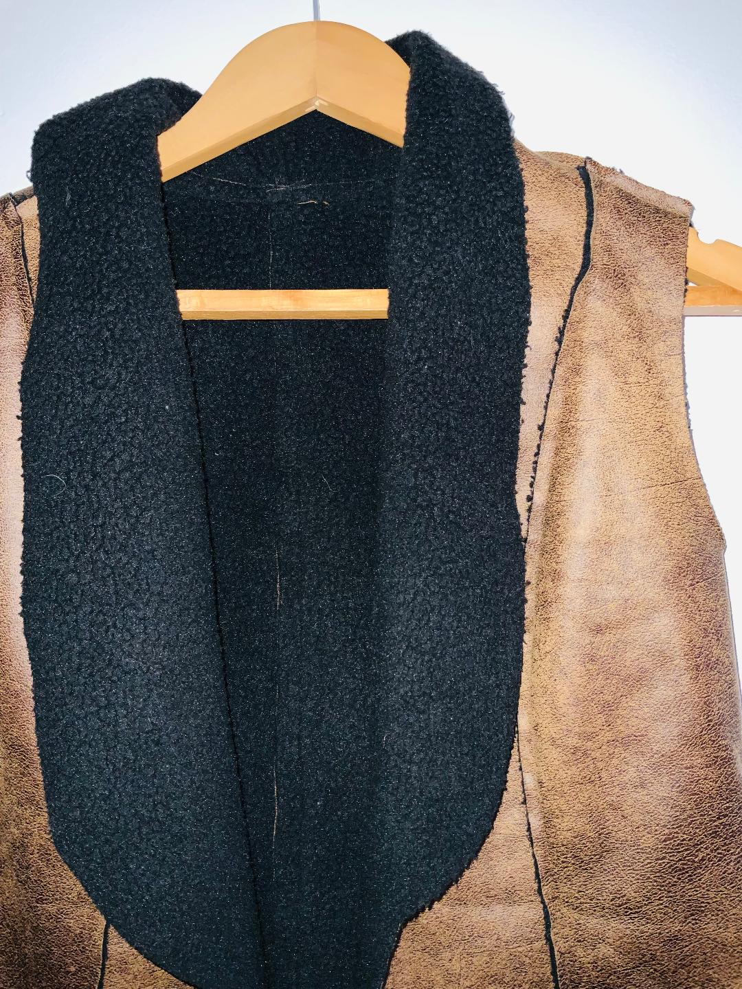 - Chaleco en tela apariencia cuero con perchado tipo ovejero por en interior