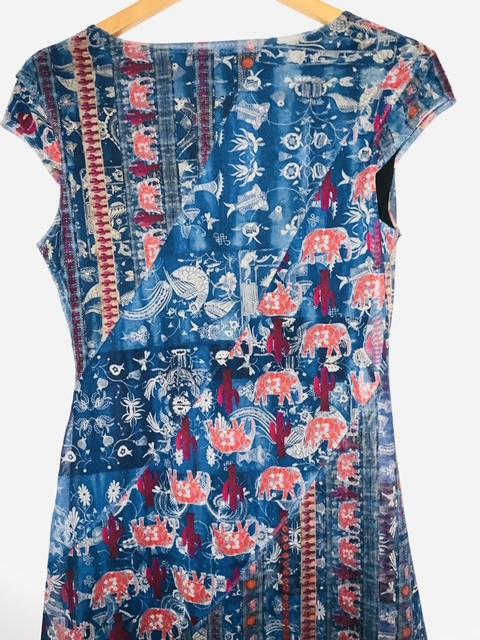 - Vestido de tul estampado que combina delicadeza y estilo con su diseño