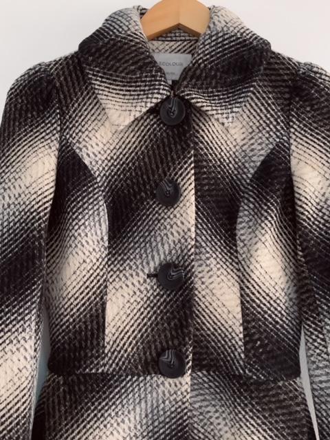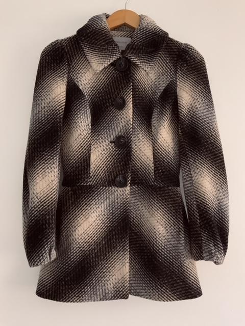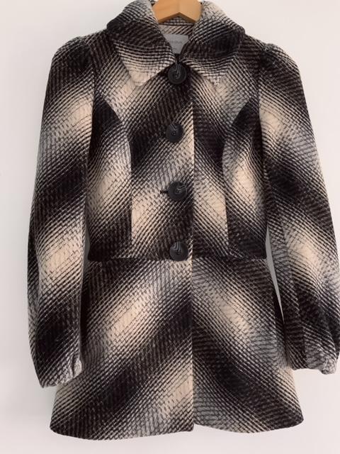 - Chaqueta en paño tipo gabán con cuello recto con 4 botones grandes