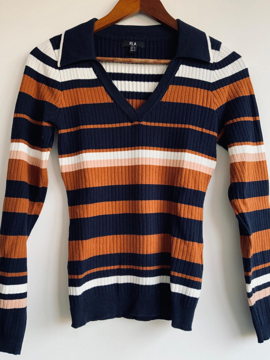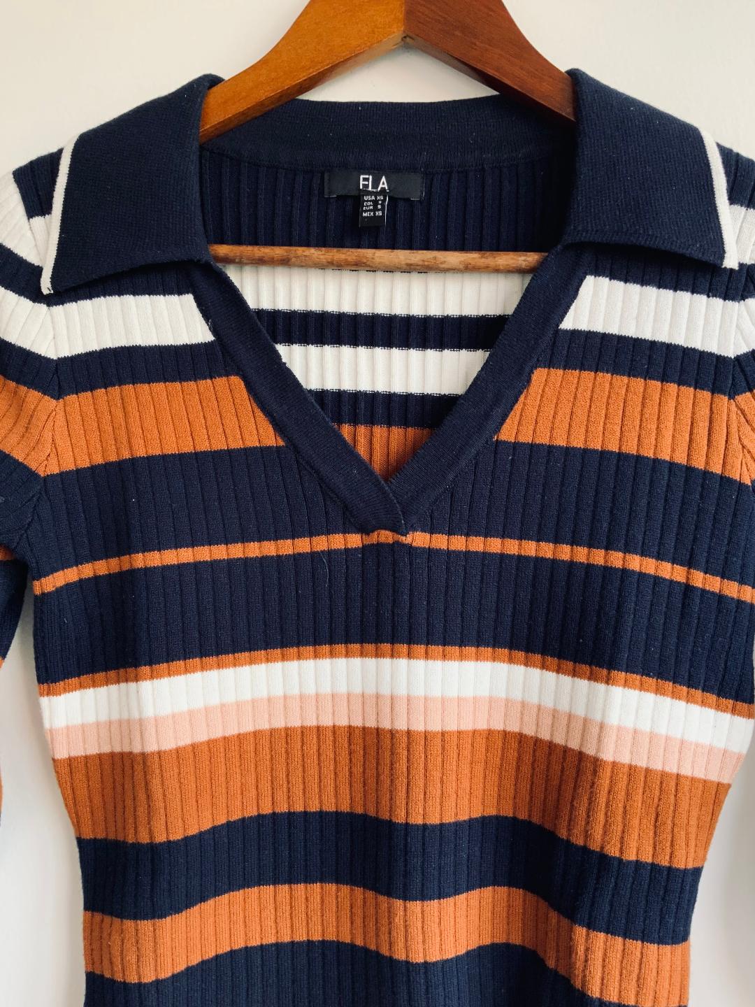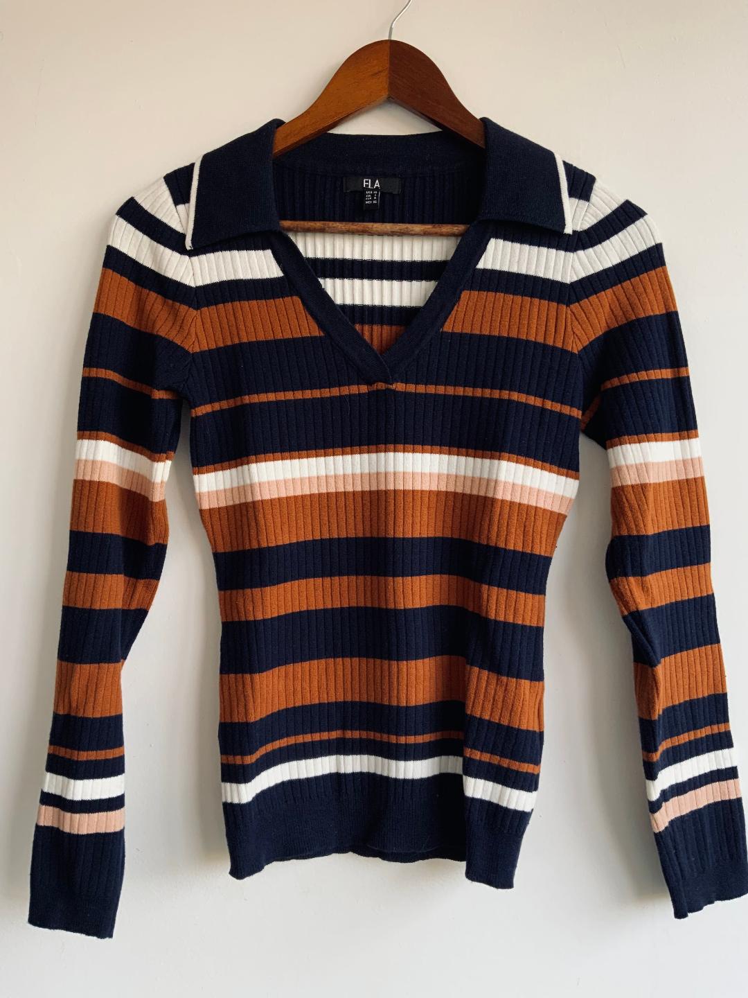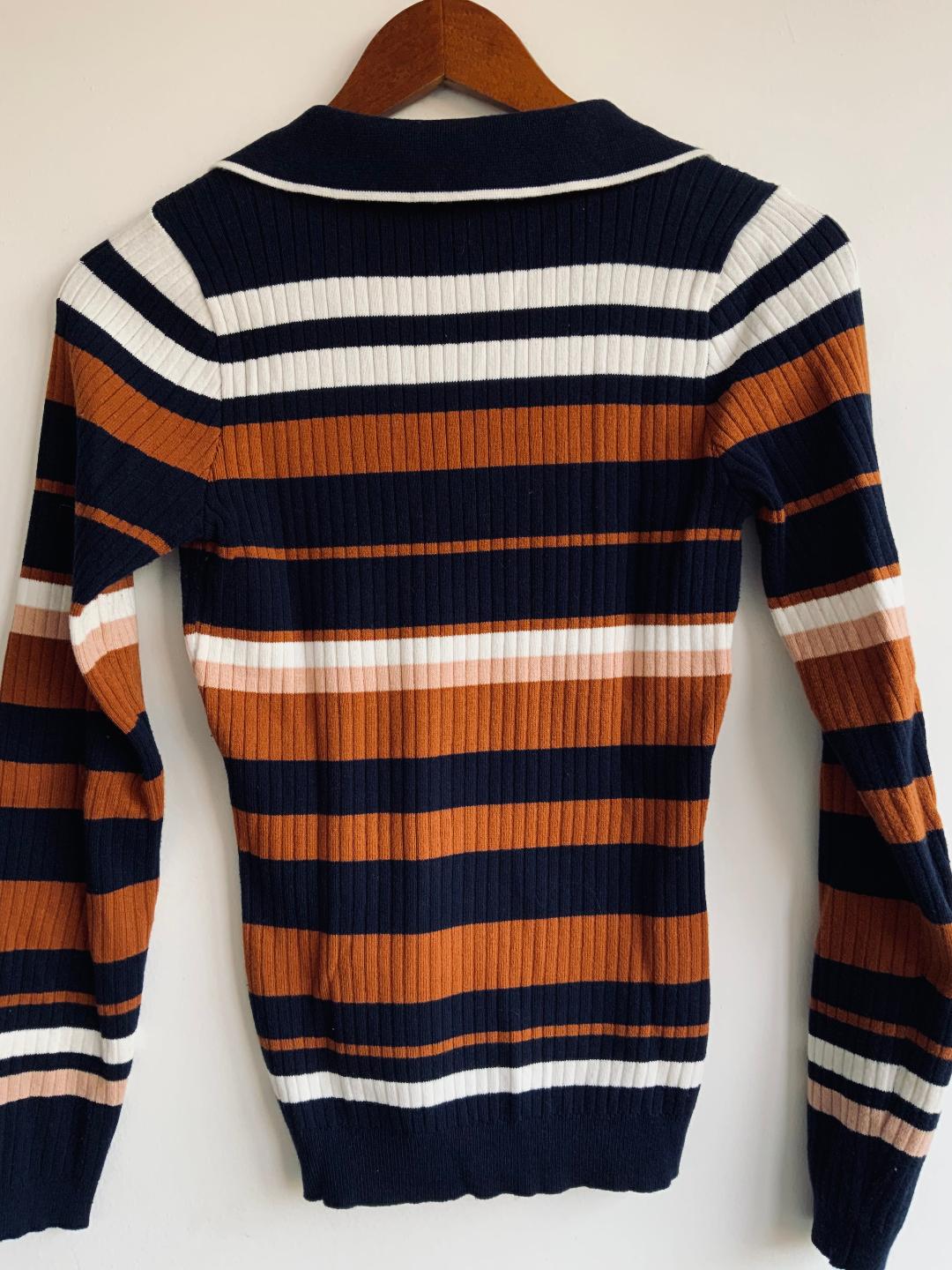 ELA Sweater tipo polo a rayas. Talla XS