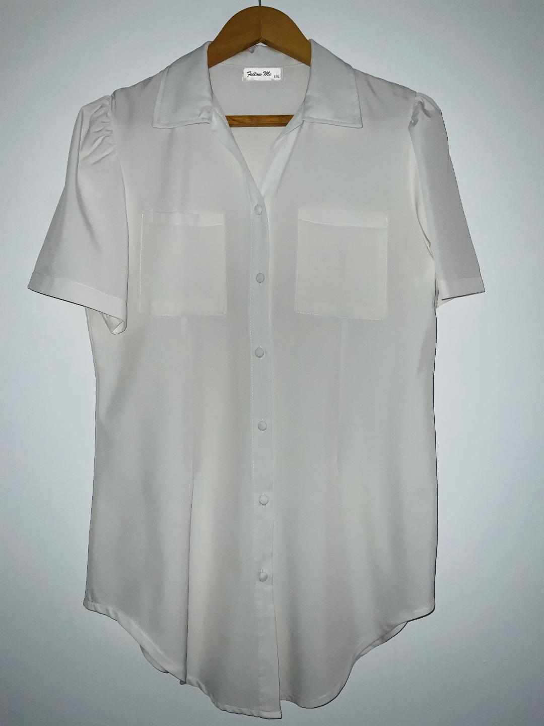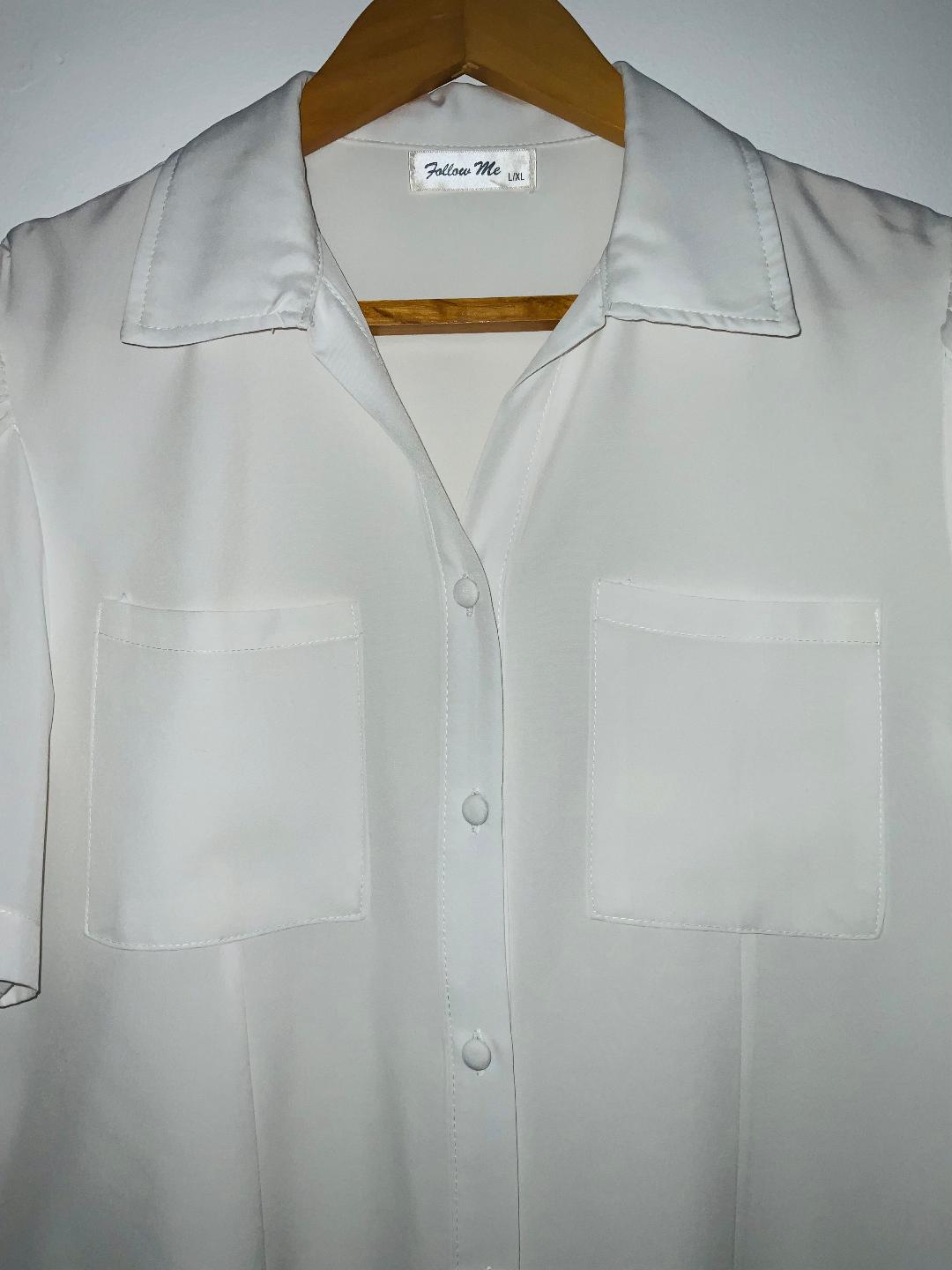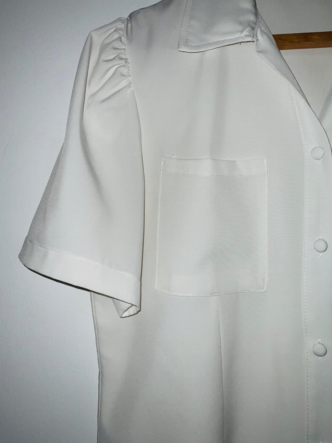 - Blusa elegante para mujer con cuello camisero en tela plana