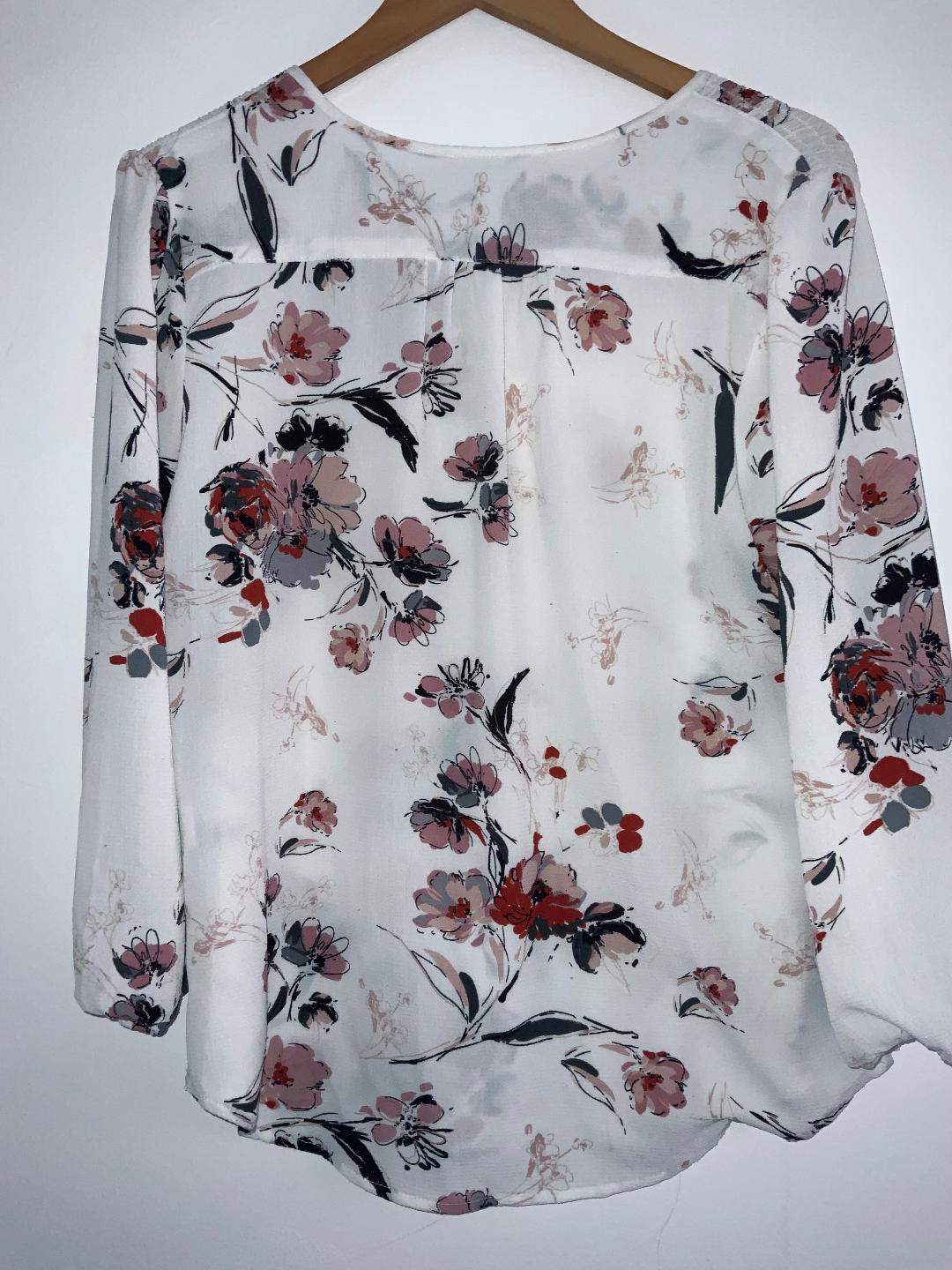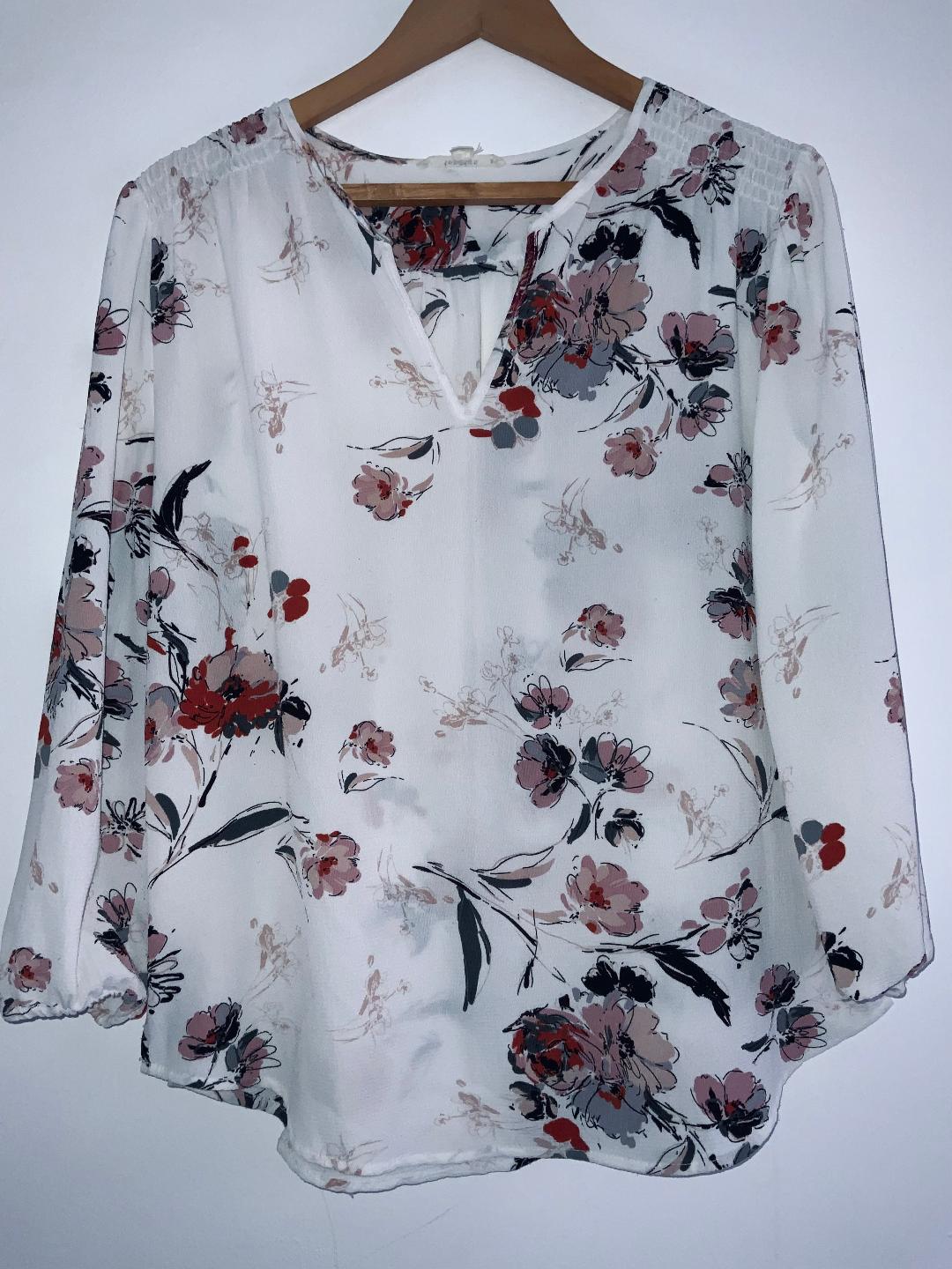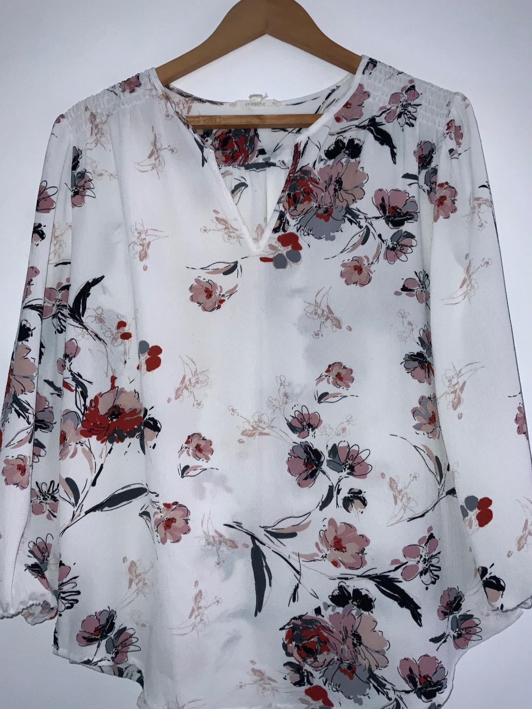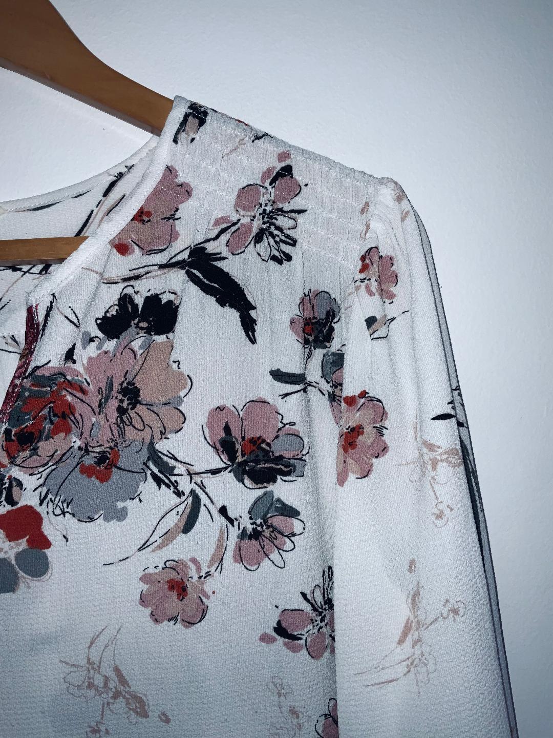 - Blusa en tela plana tipo crepé estampada en flores