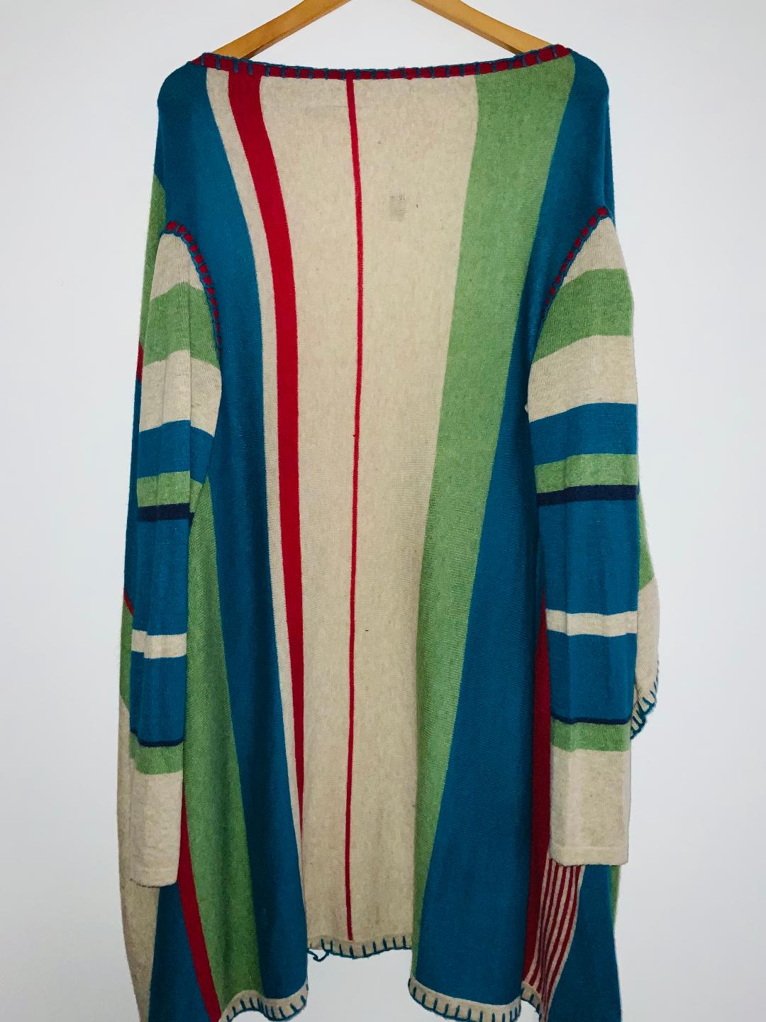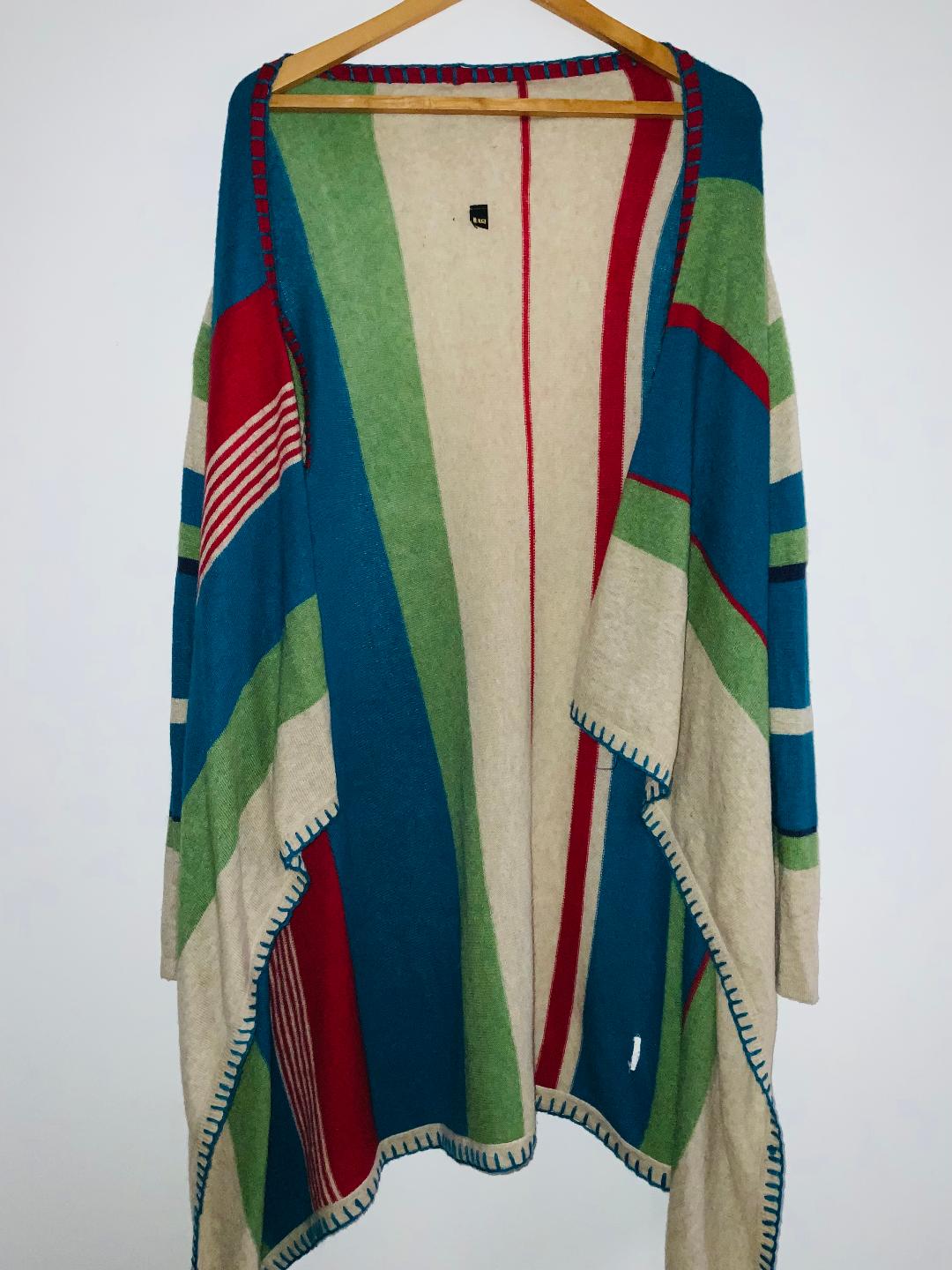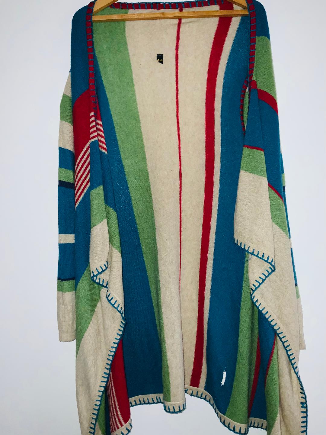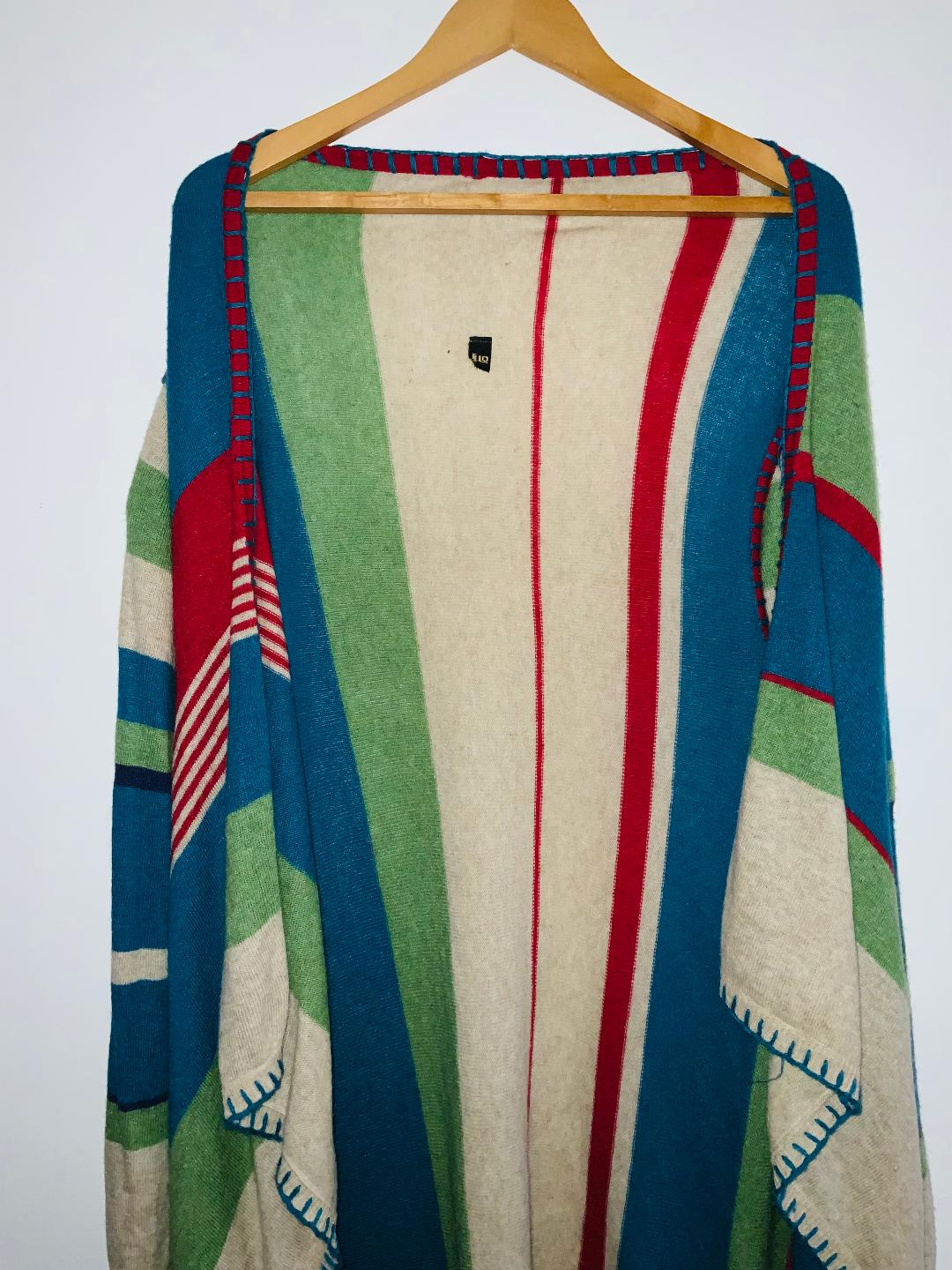 - q Cardigan amplio abierto tejido en franjas verticales de colores