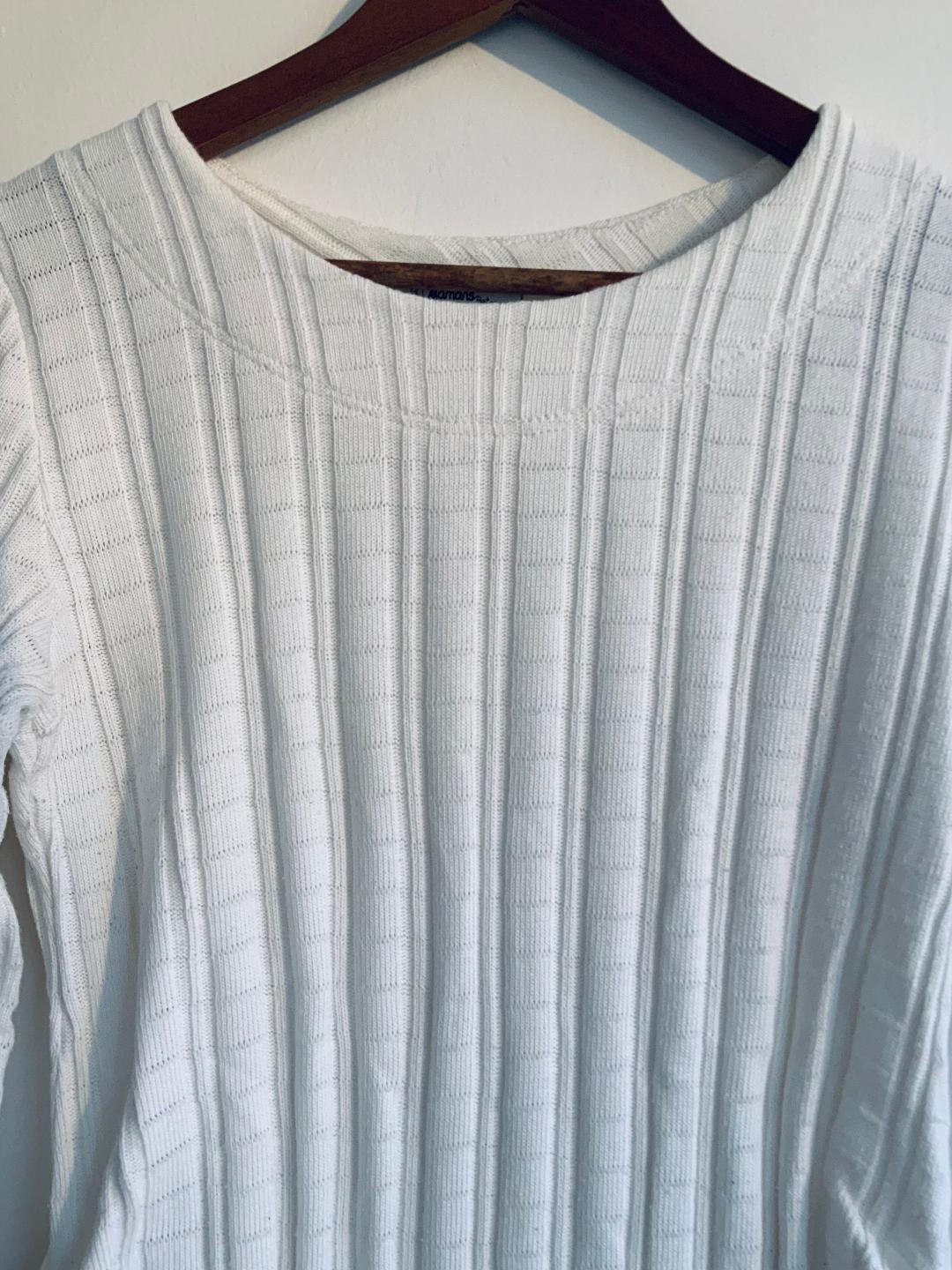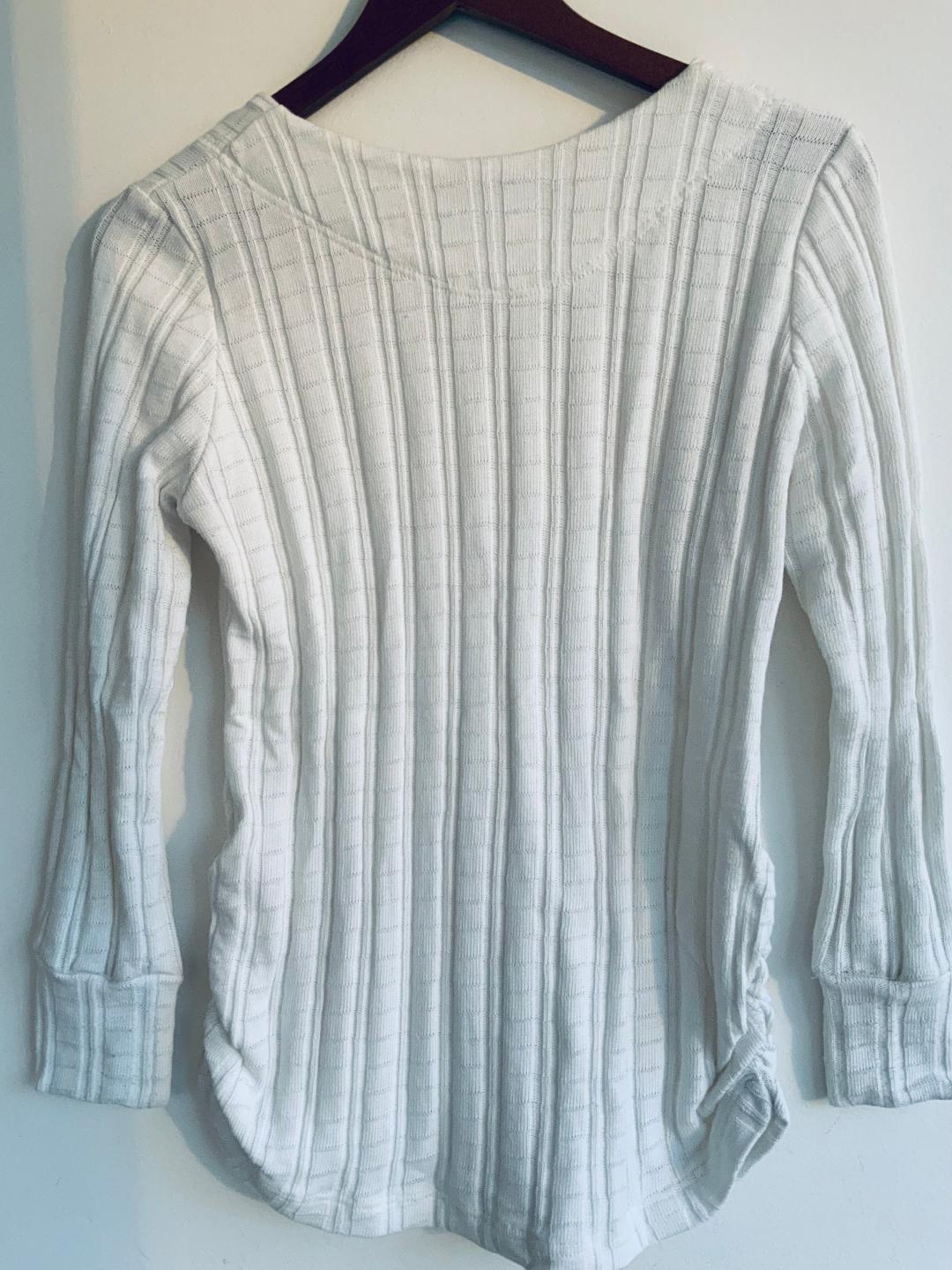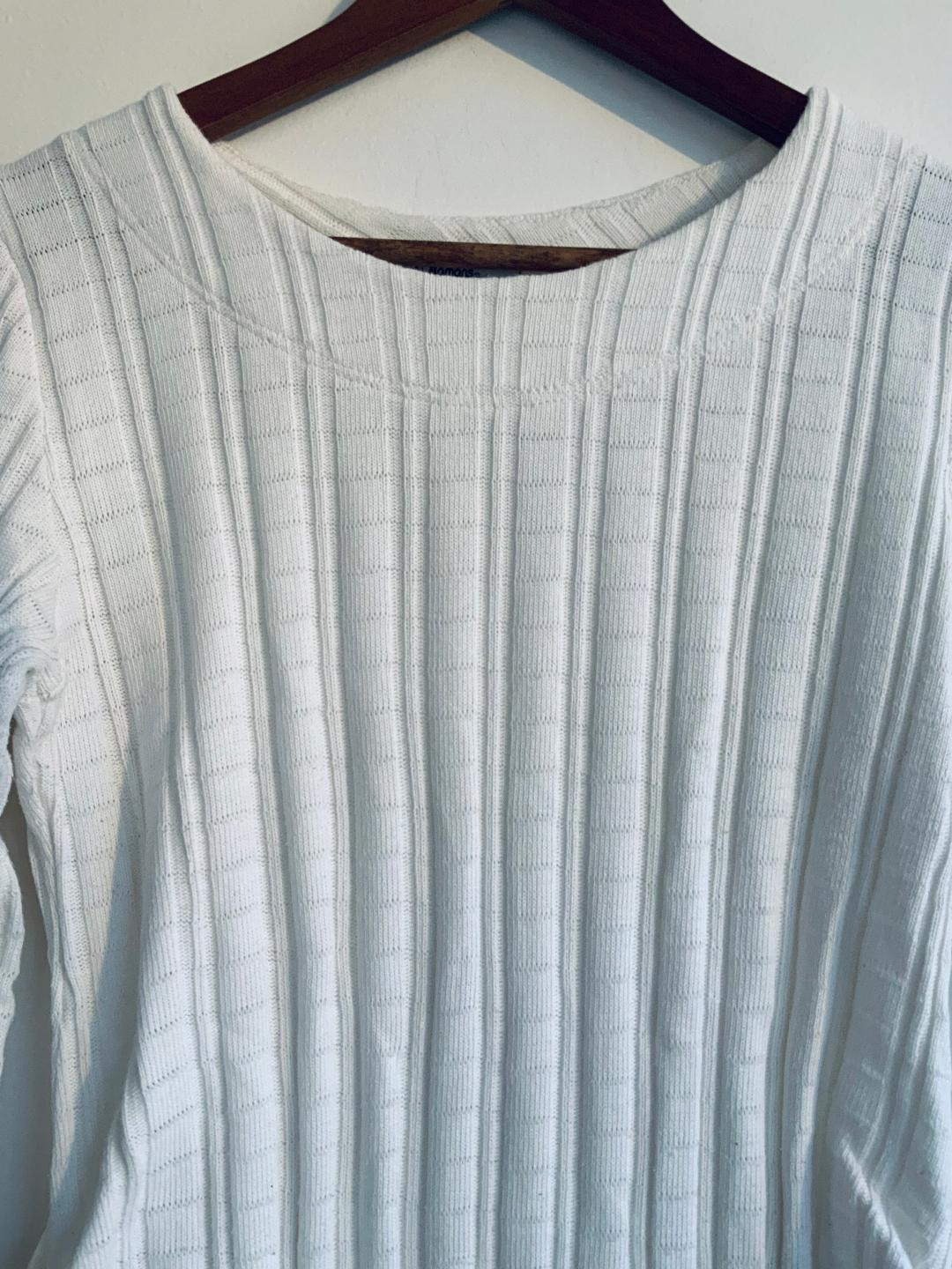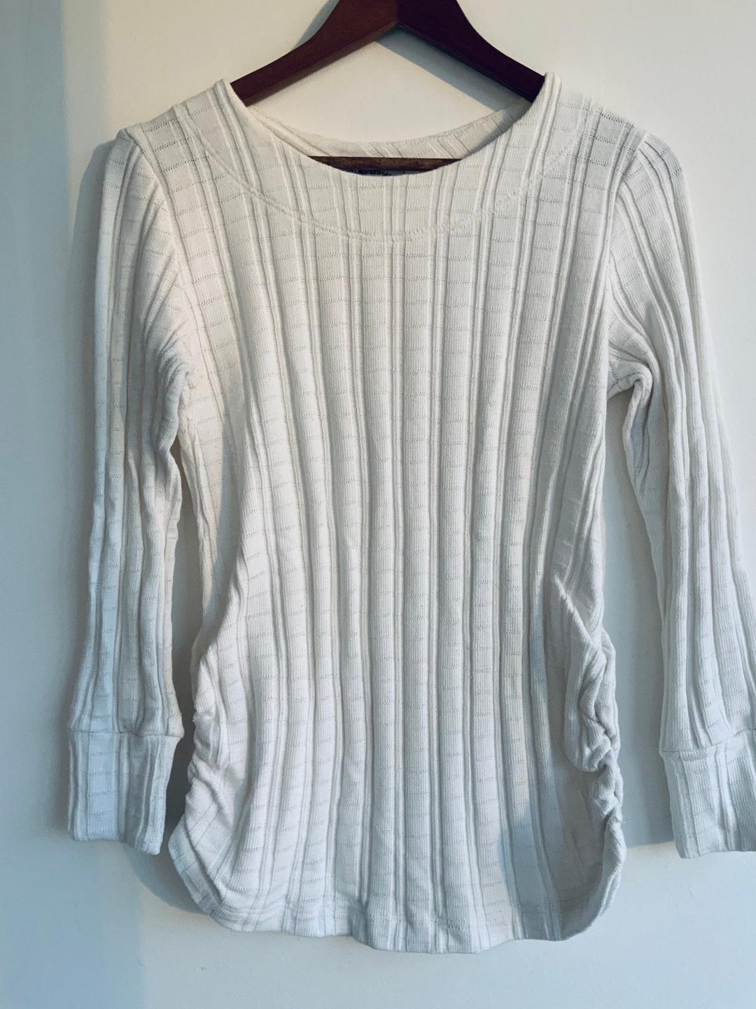 • Buzo materno manga larga tejido desagujado cuello redondo bajo