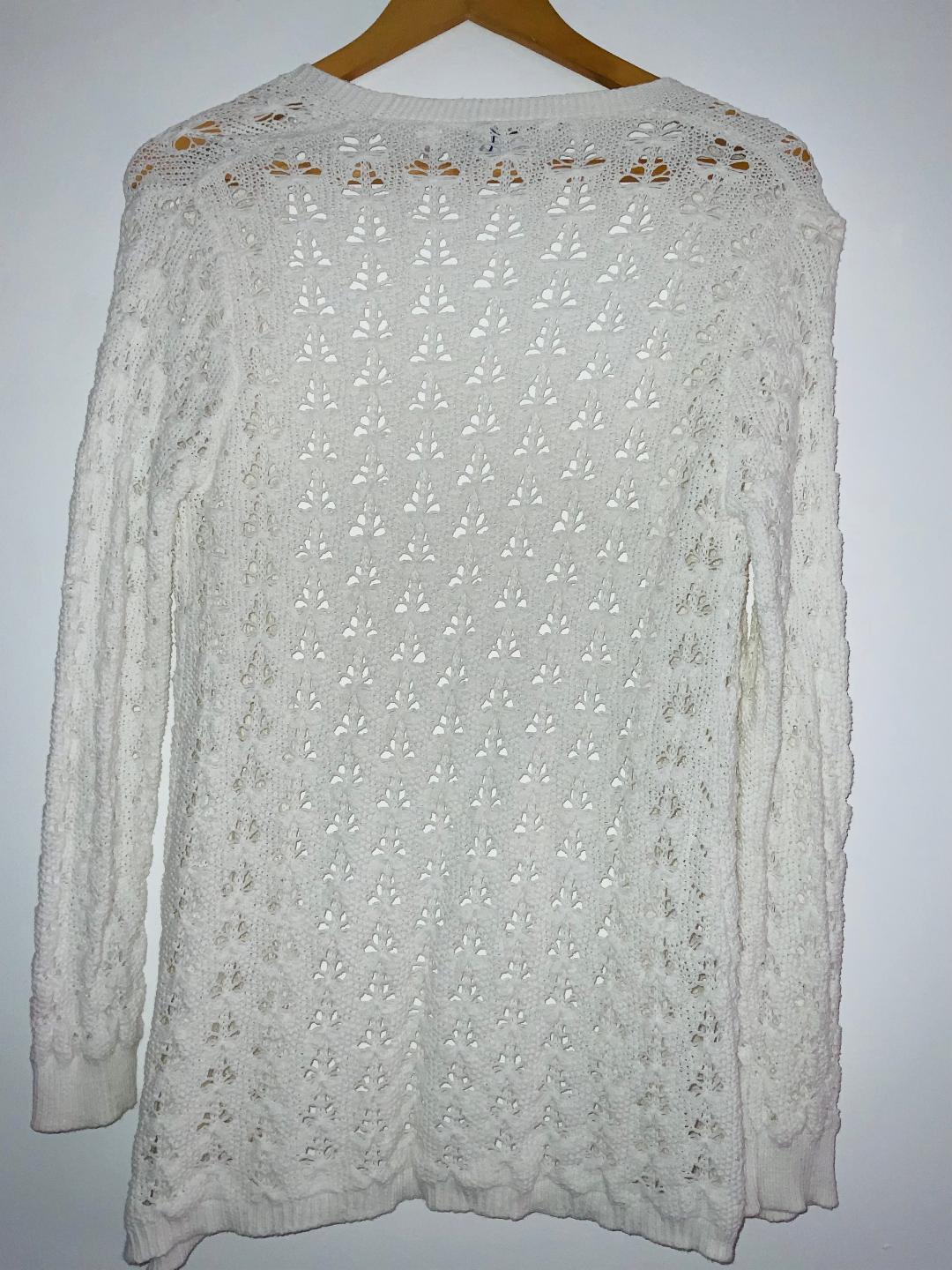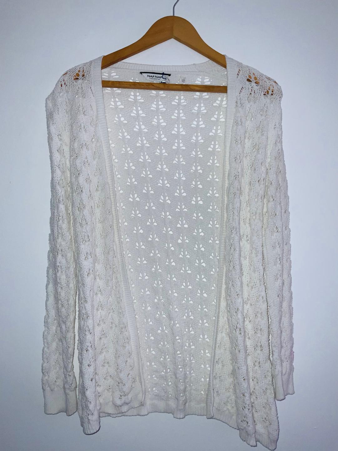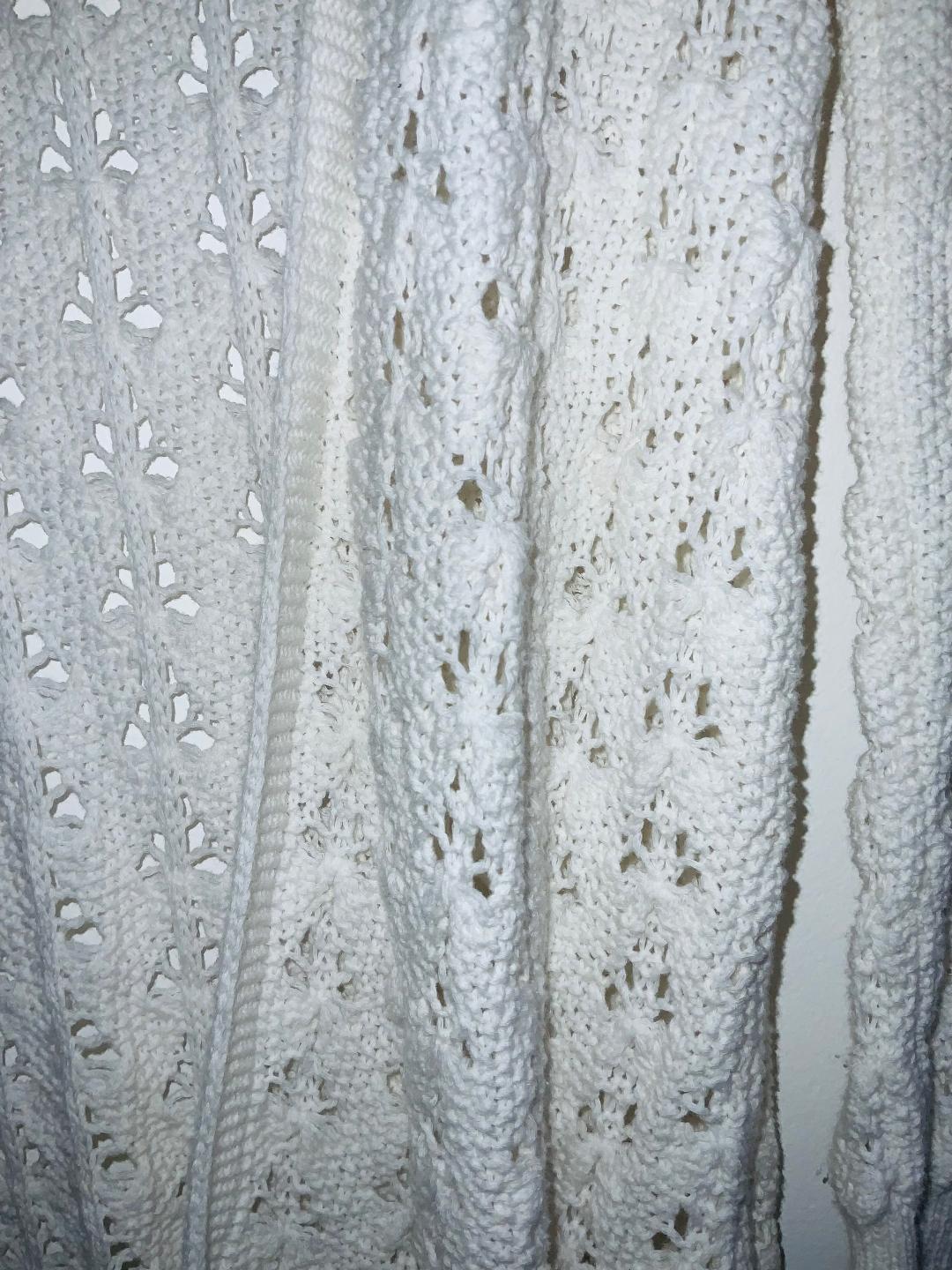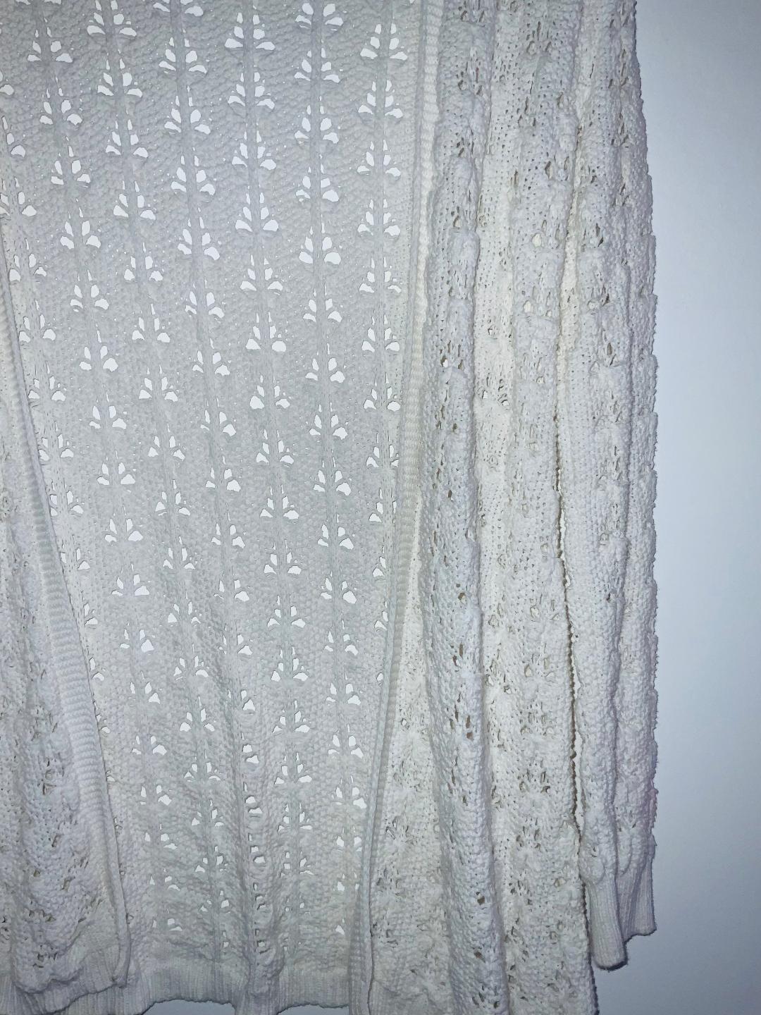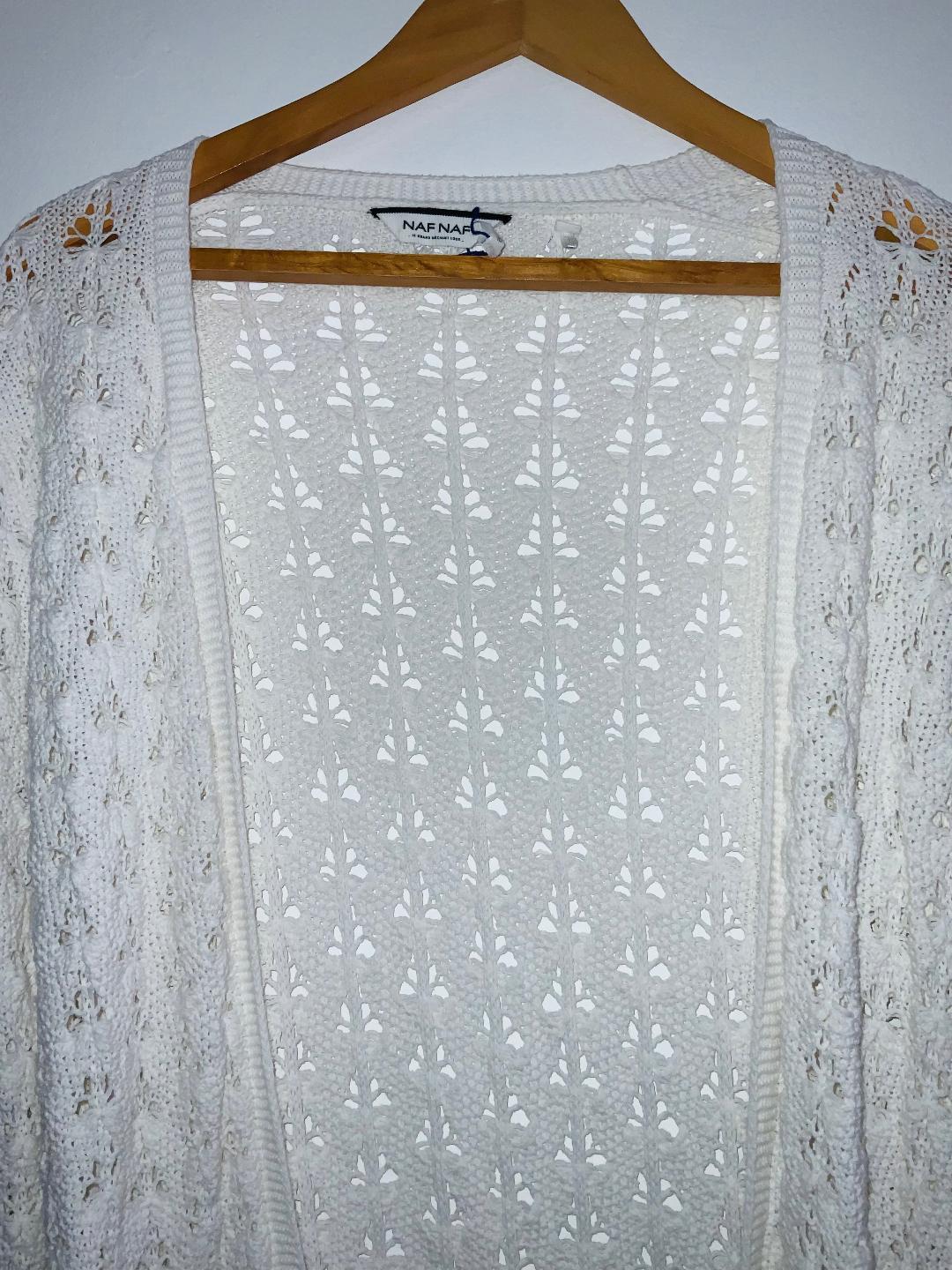 • Hermoso y delicado Cárdigan abierto tejido en hilo con diseño calado