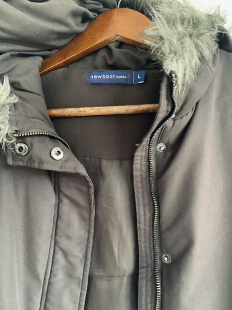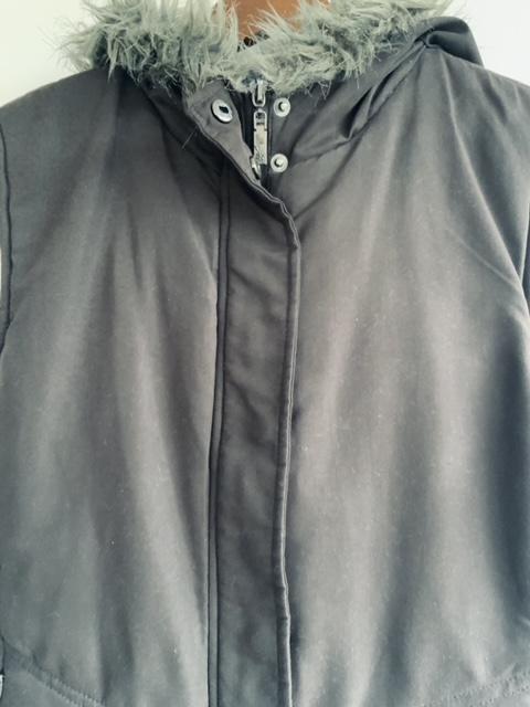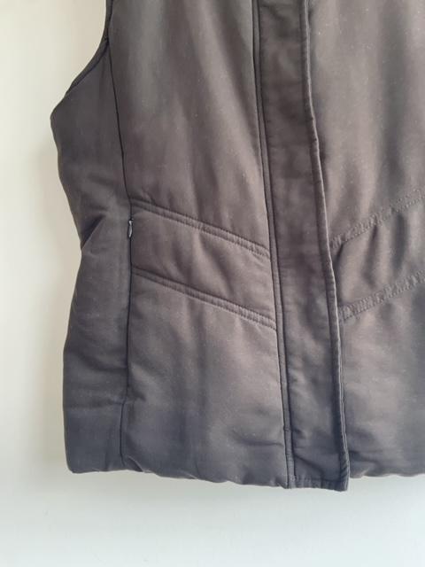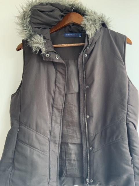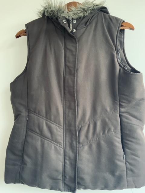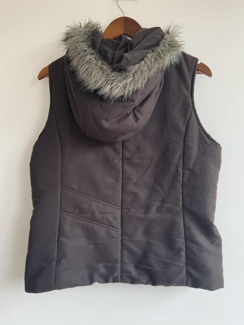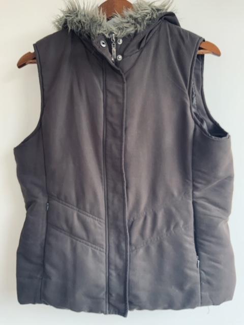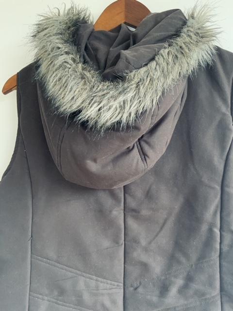 - Chaleco abullonado con capota terminada con Pelo sintético en el borde