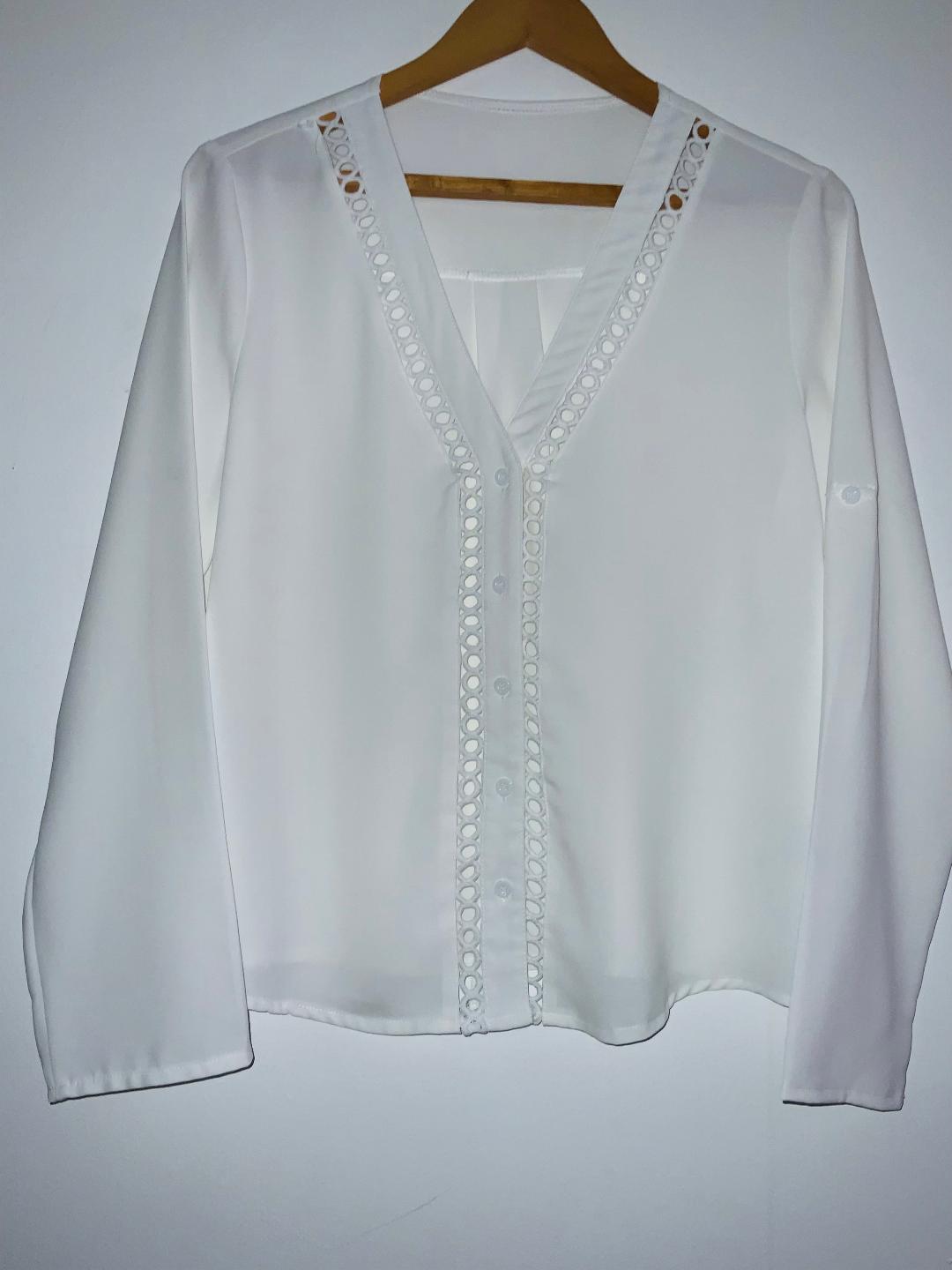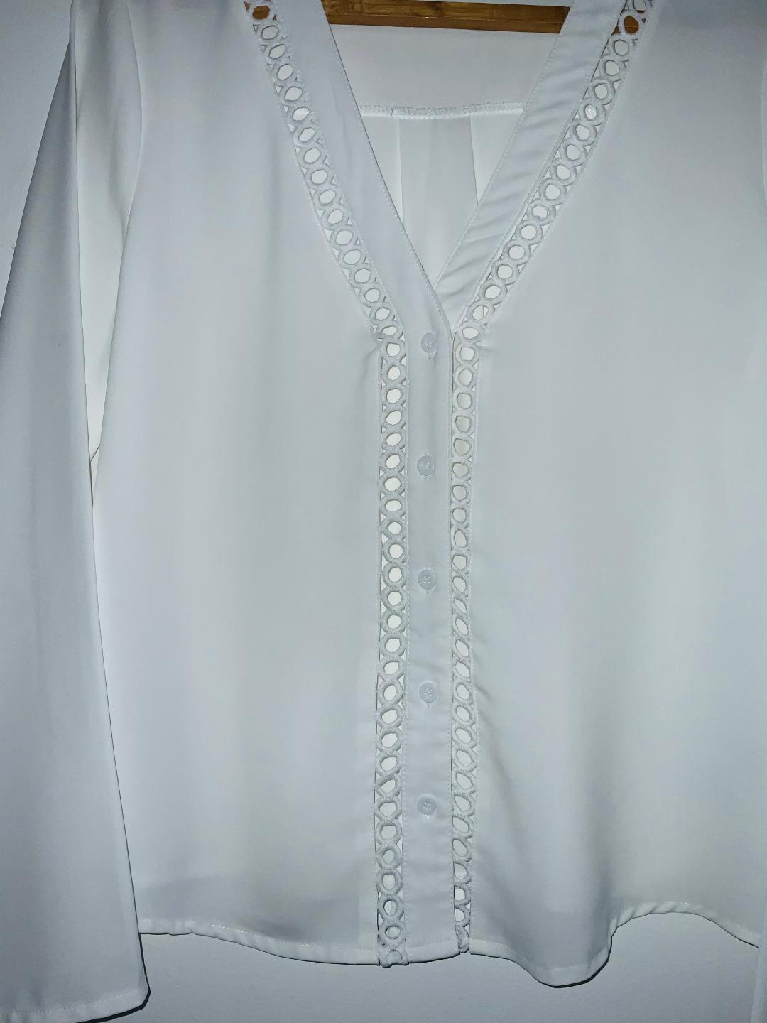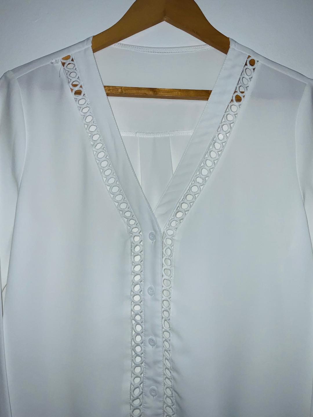 - Blusa en tela plana cuello en pico