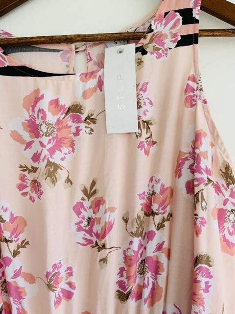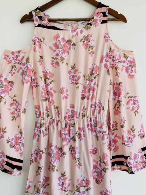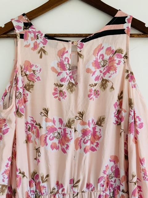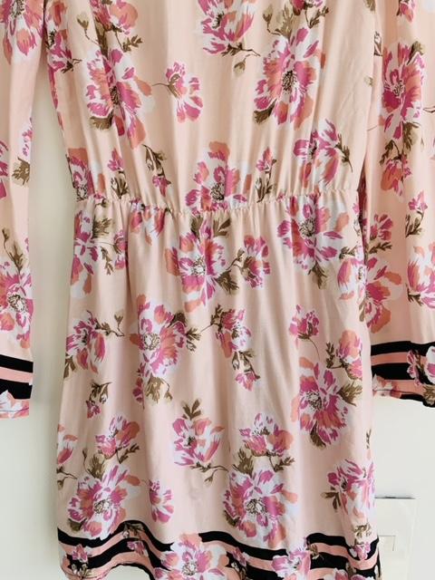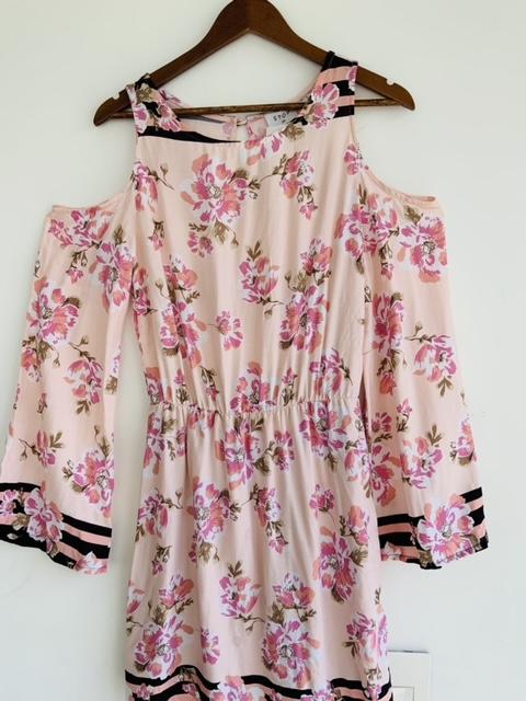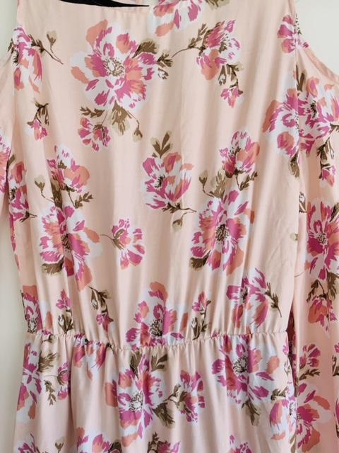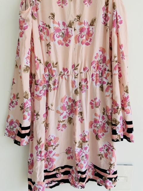 - Vestido en tela plana cuello redondo estampado en flores