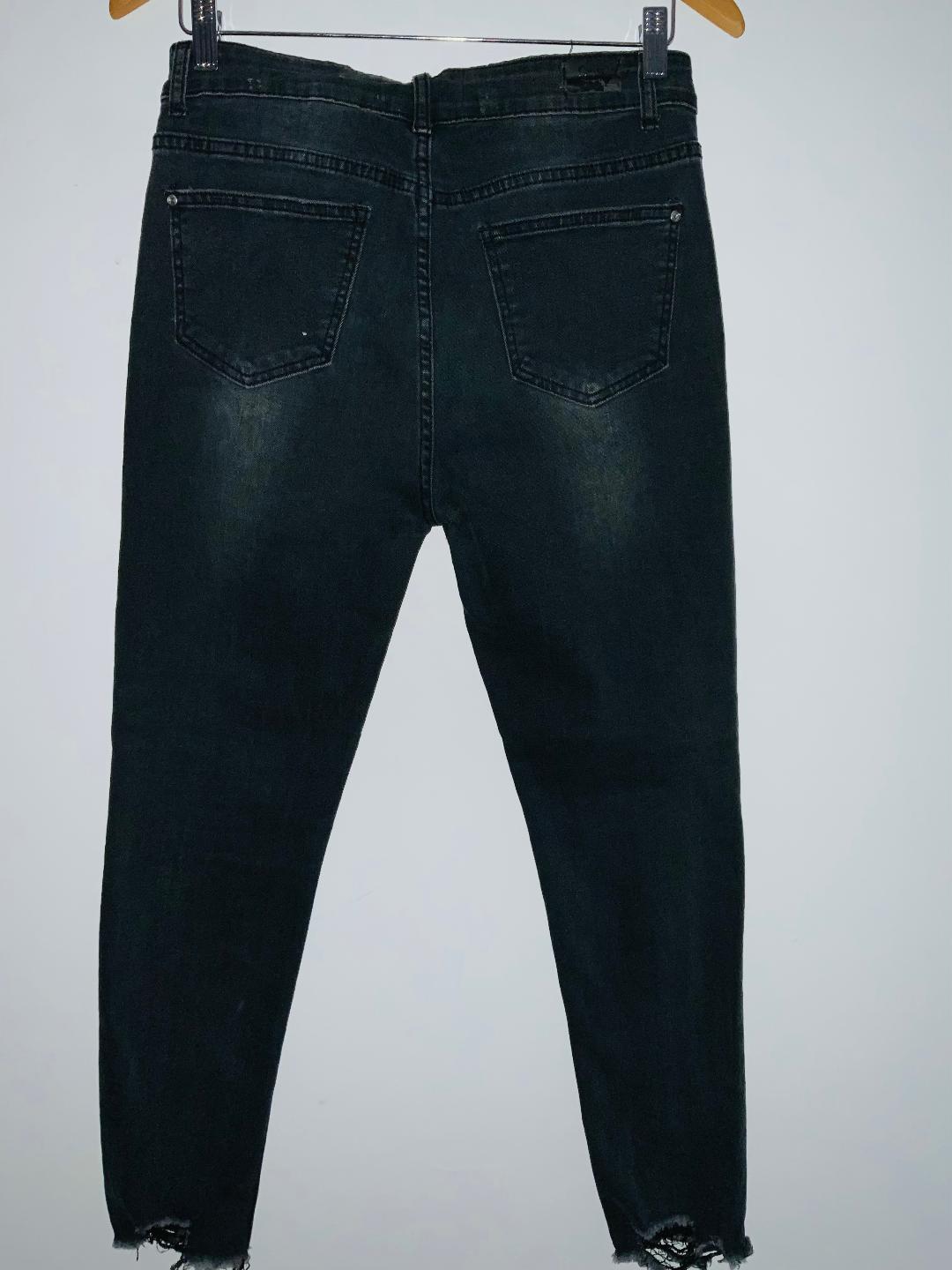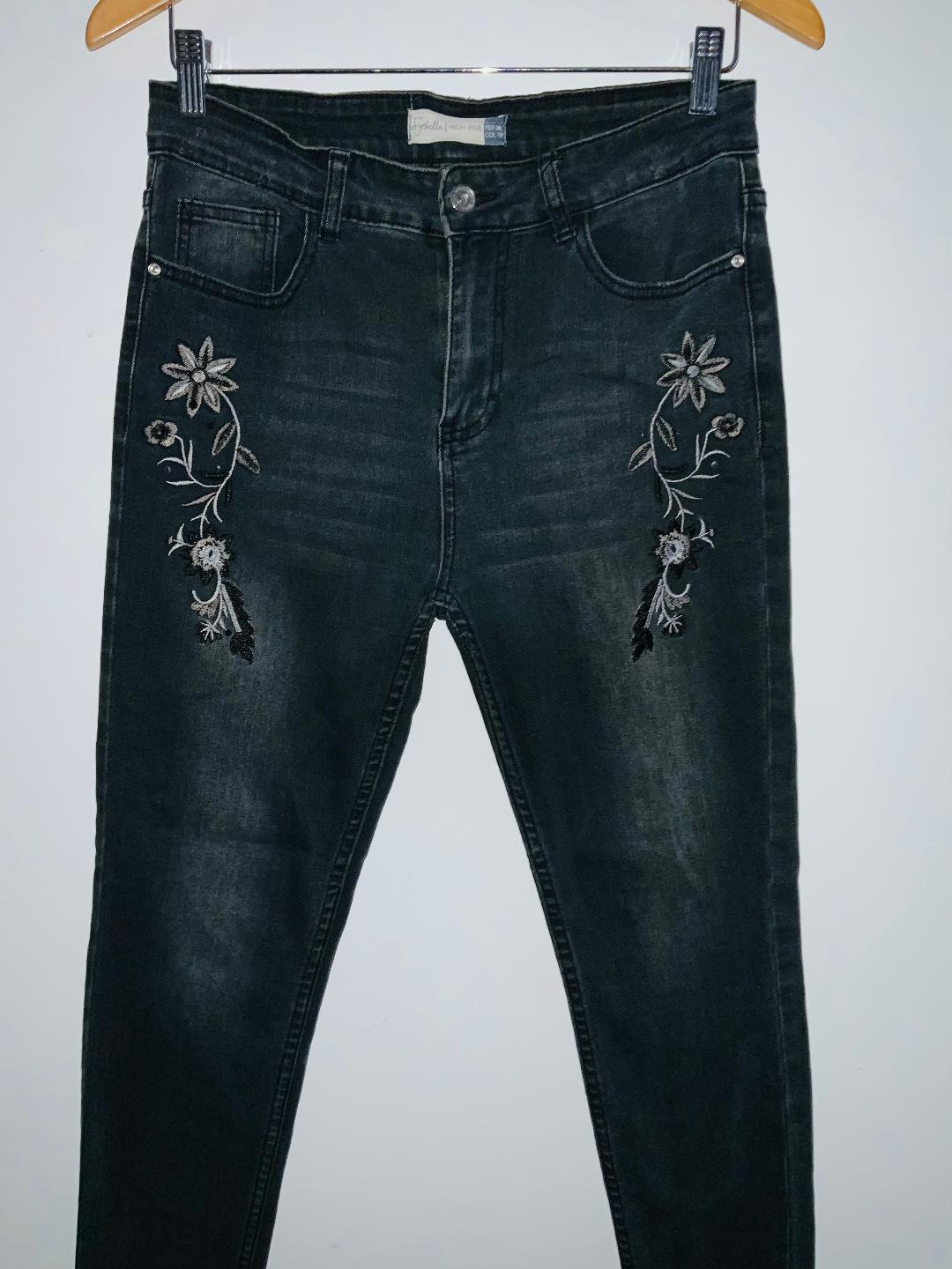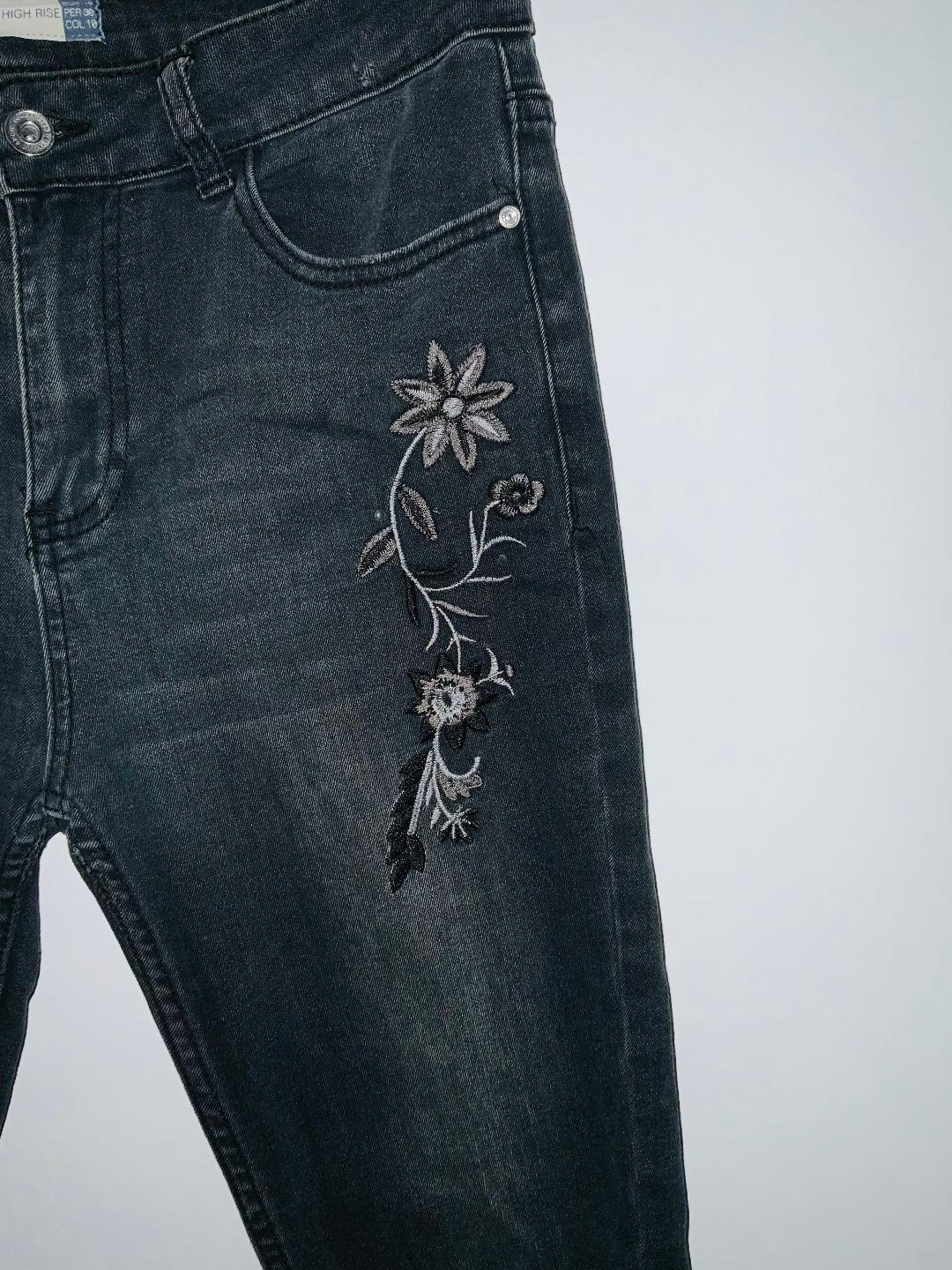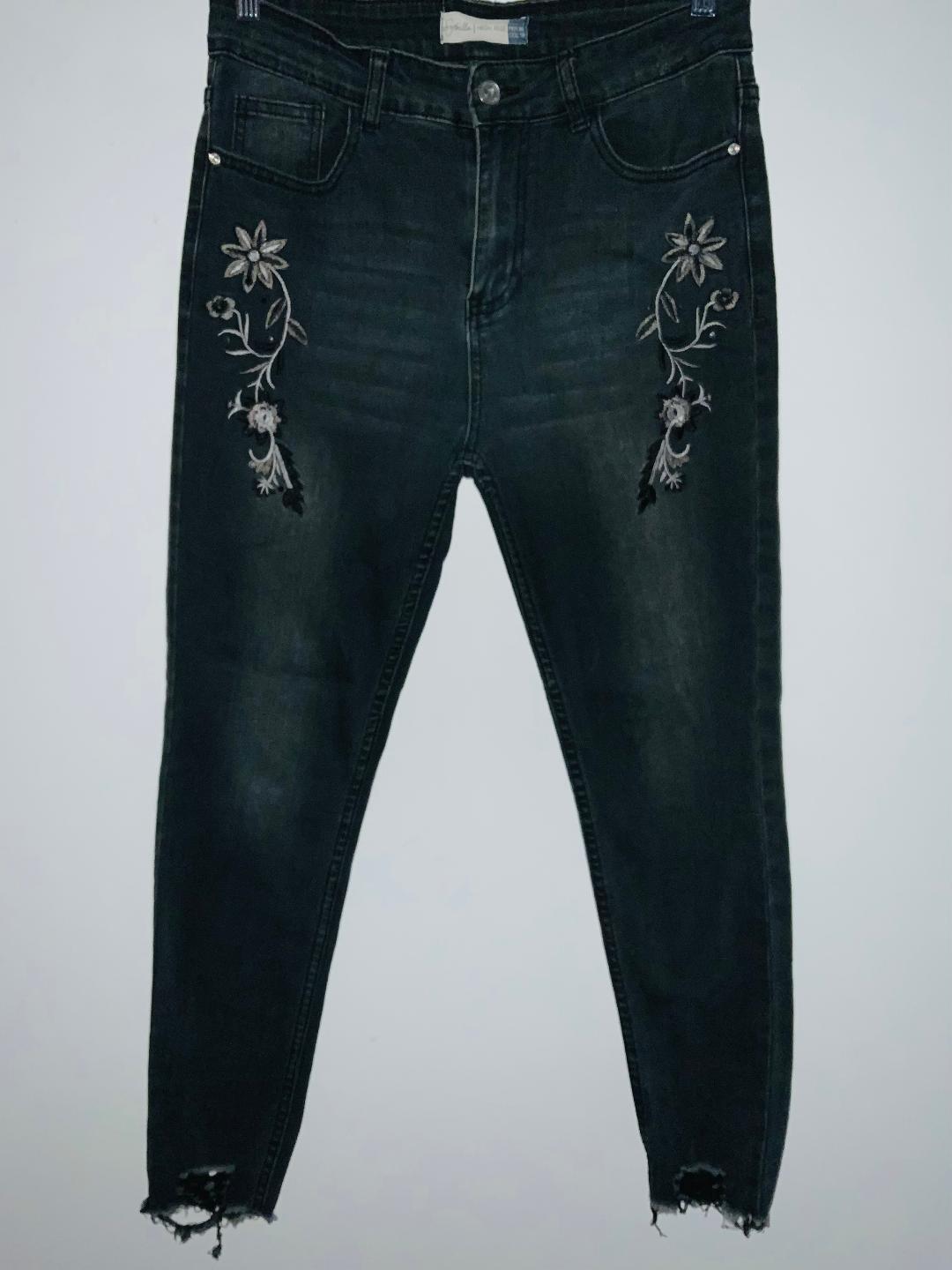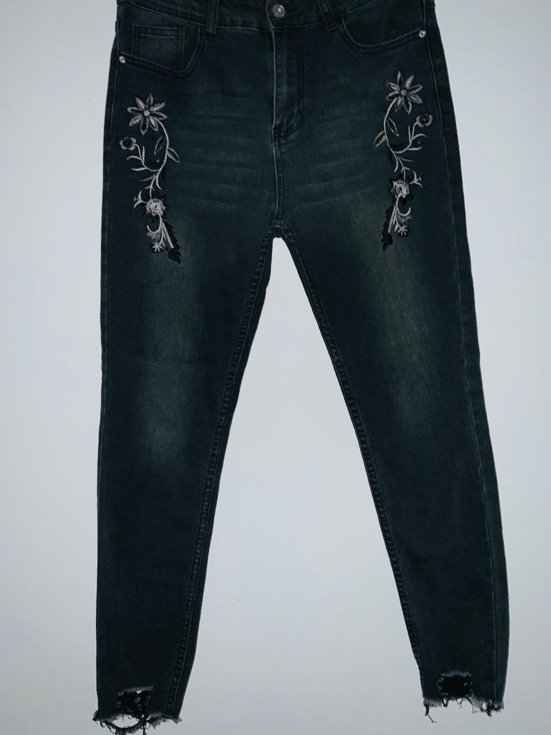 - Jean cinco bolsillos bordado de flores en piernas superiores