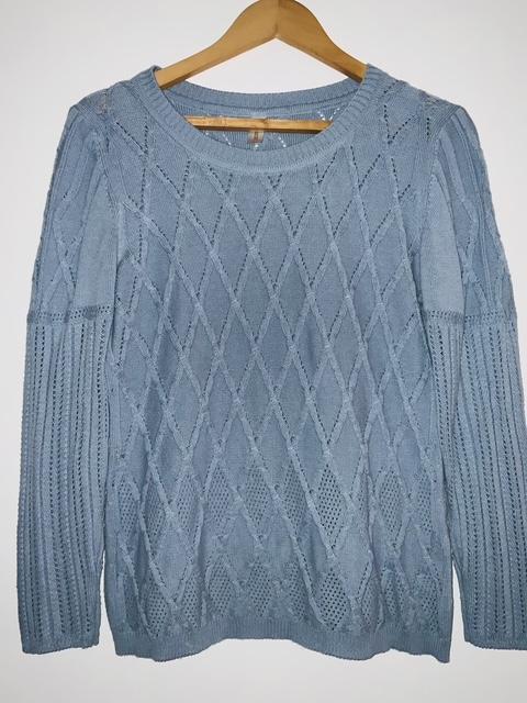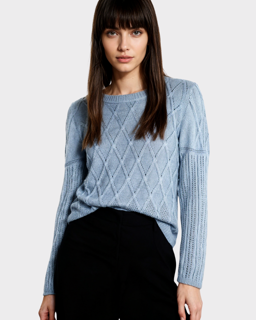 - Sweater tejido en lana acrílica con diseño Jacquard en rombos