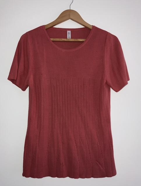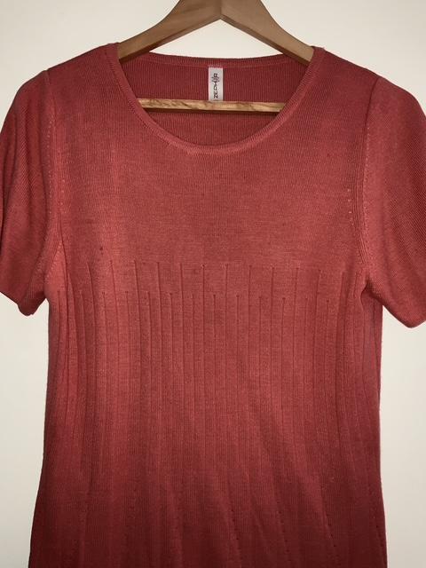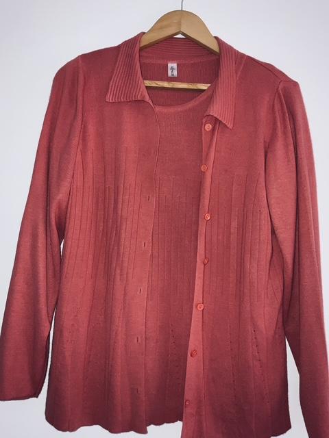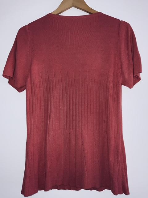 - Twin set para mujer compuesto de top manga corta y cardigan ambos tejidos en la misma fibra