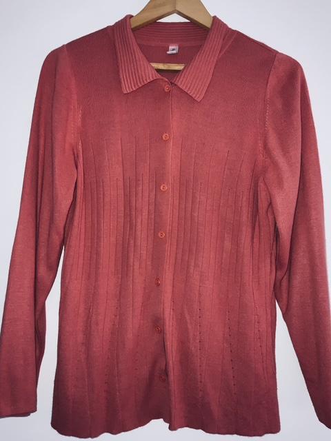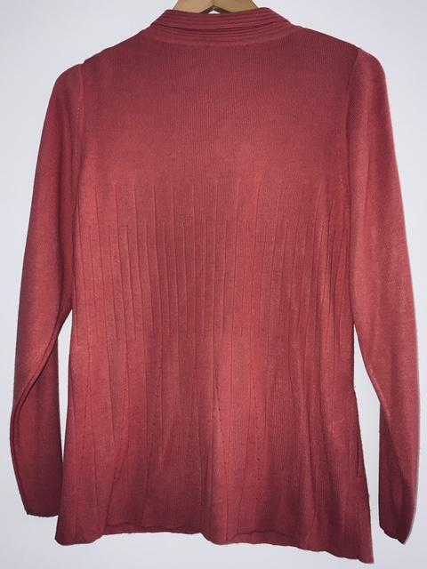 - El cárdigan abierto con cuello y botones en el delantero, tiene bolsillos laterales