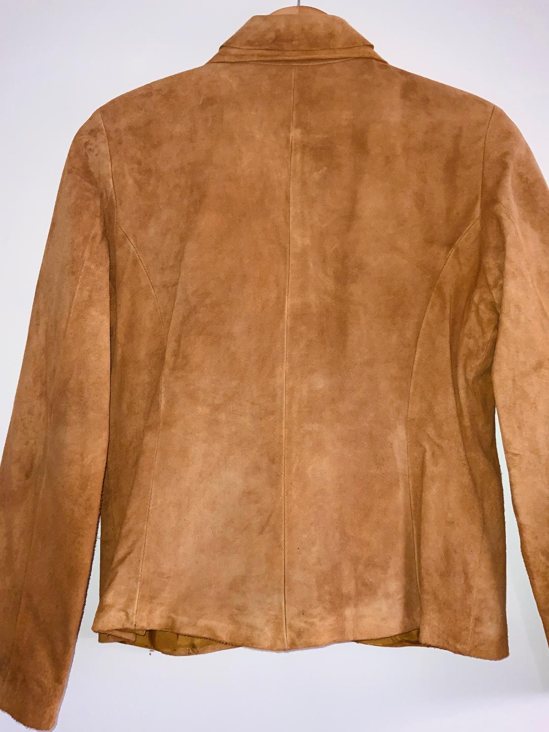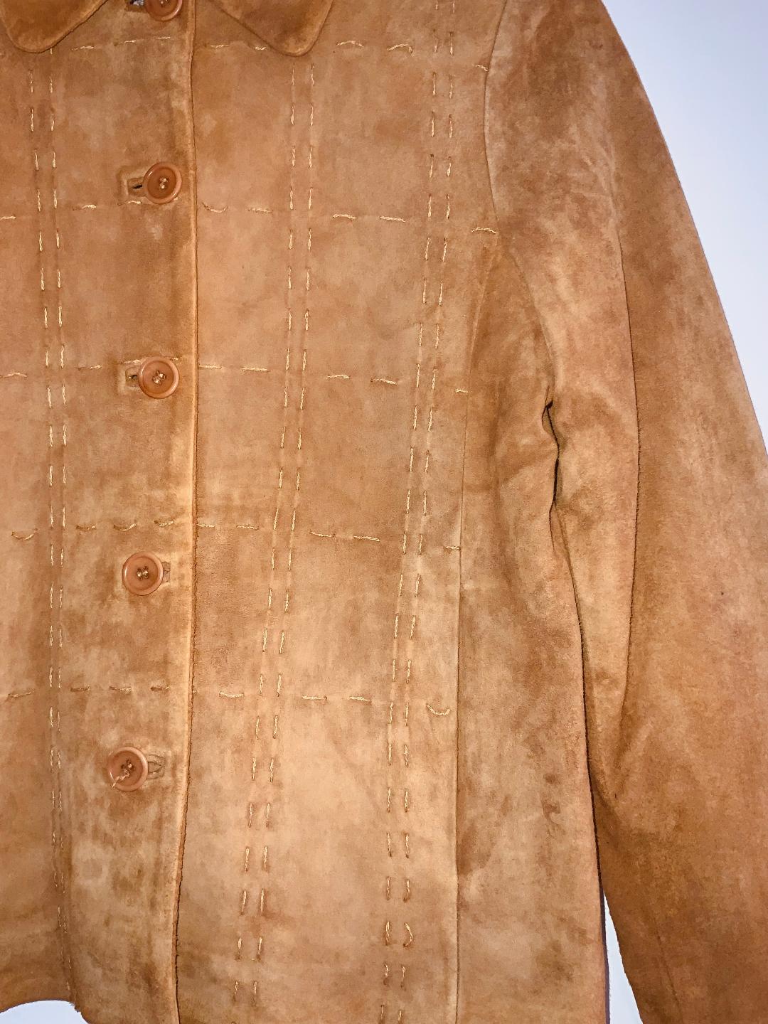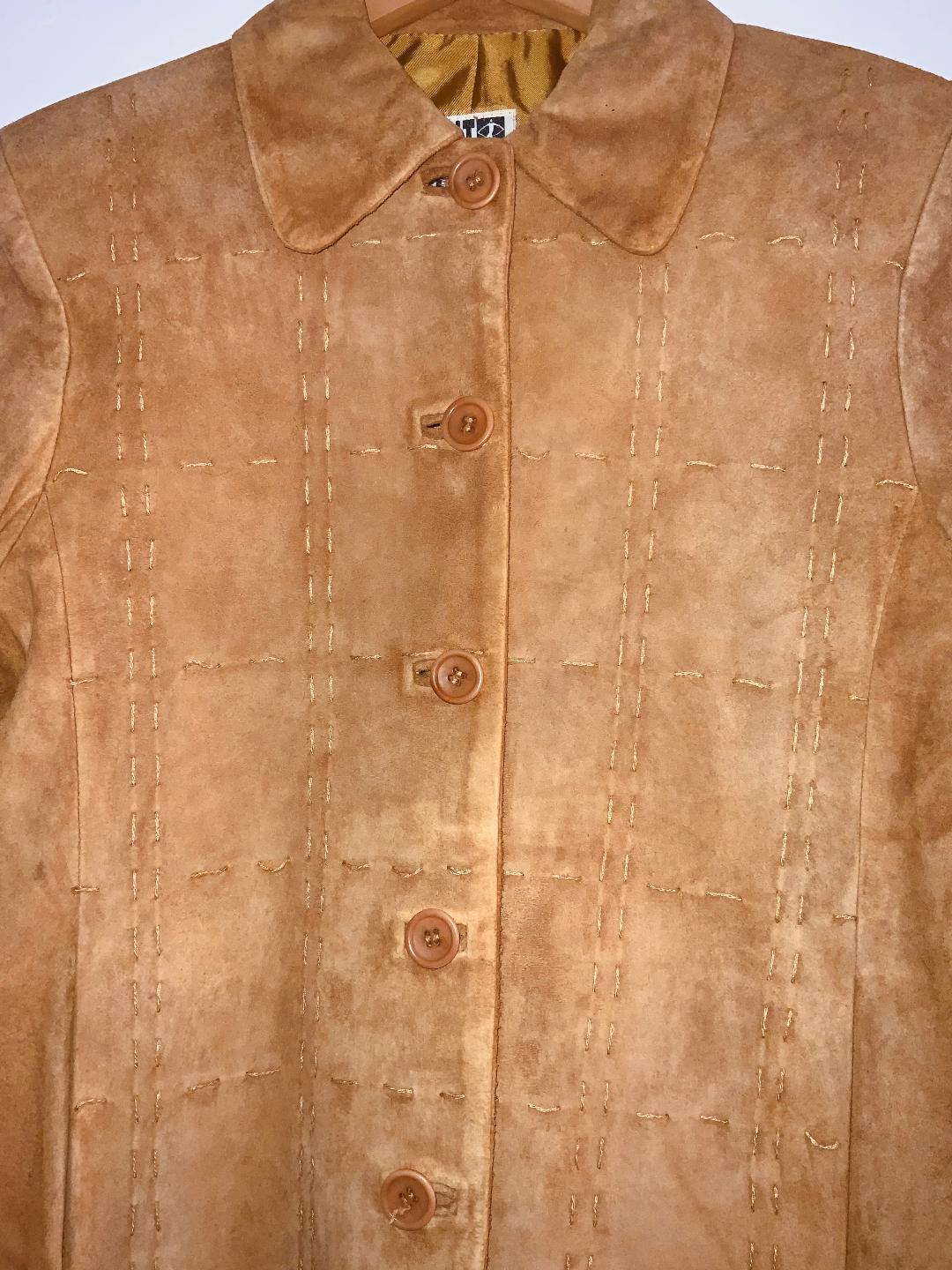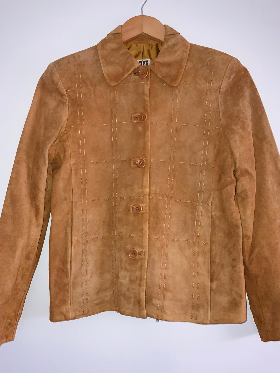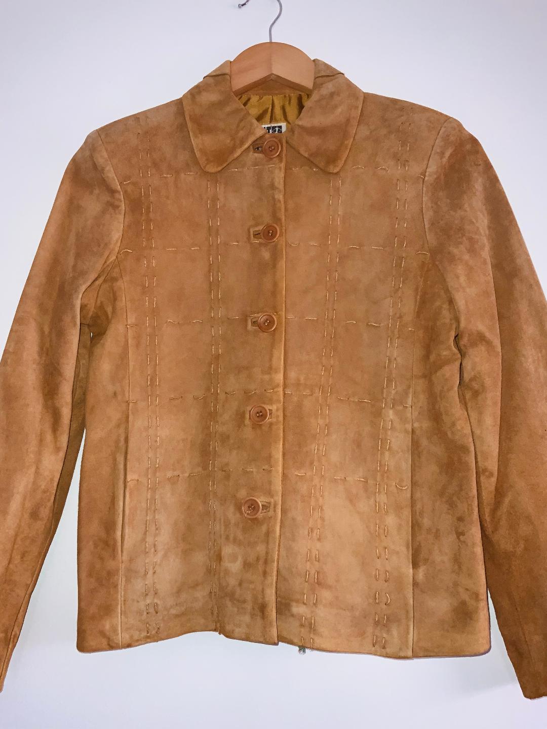 - Chaqueta de gamuza para mujer con cuello y botones en delantero